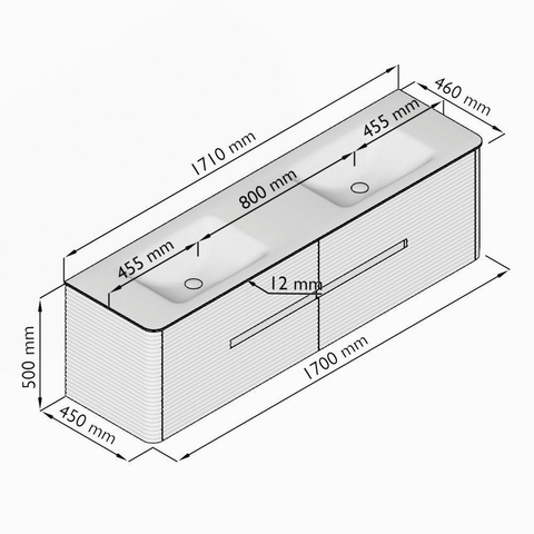 - Breedte wastafel: 171cm