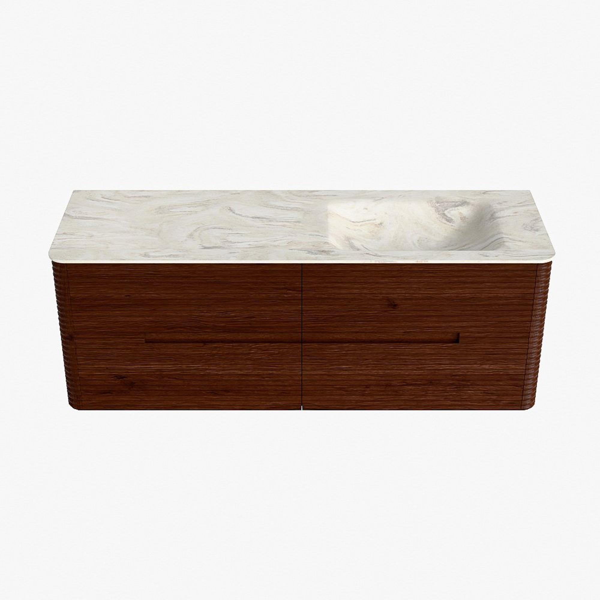 Mondiaz CIRO-DLUX Badkamermeubelset - 140x45x50cm - Solid surface wastafel Ostra - 1 wasbak Rechts - zonder kraangaten - 4 lades - Ruby