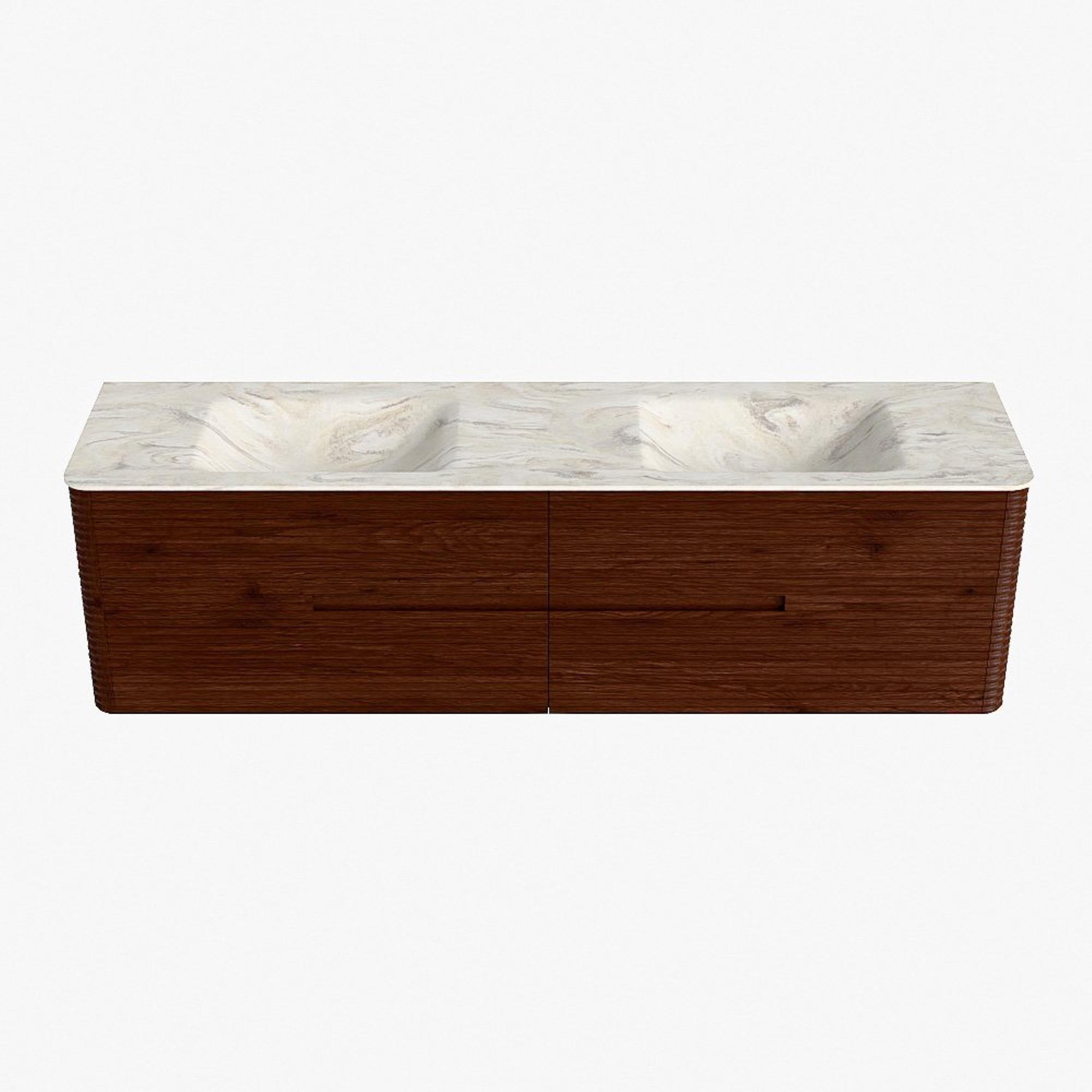 Mondiaz CIRO-DLUX Badkamermeubelset - 180x45x50cm - Solid surface wastafel Ostra - 2 wasbak Dubbel - zonder kraangaten - 4 lades - Ruby