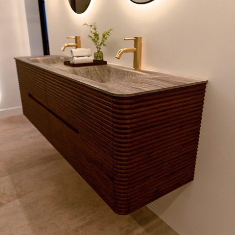 Mondiaz CIRO-DLUX Badkamermeubelset - 160x45x50cm - Solid surface wastafel Oza - 2 wasbak Dubbel - 2 kraangaten - 4 lades - Ruby
