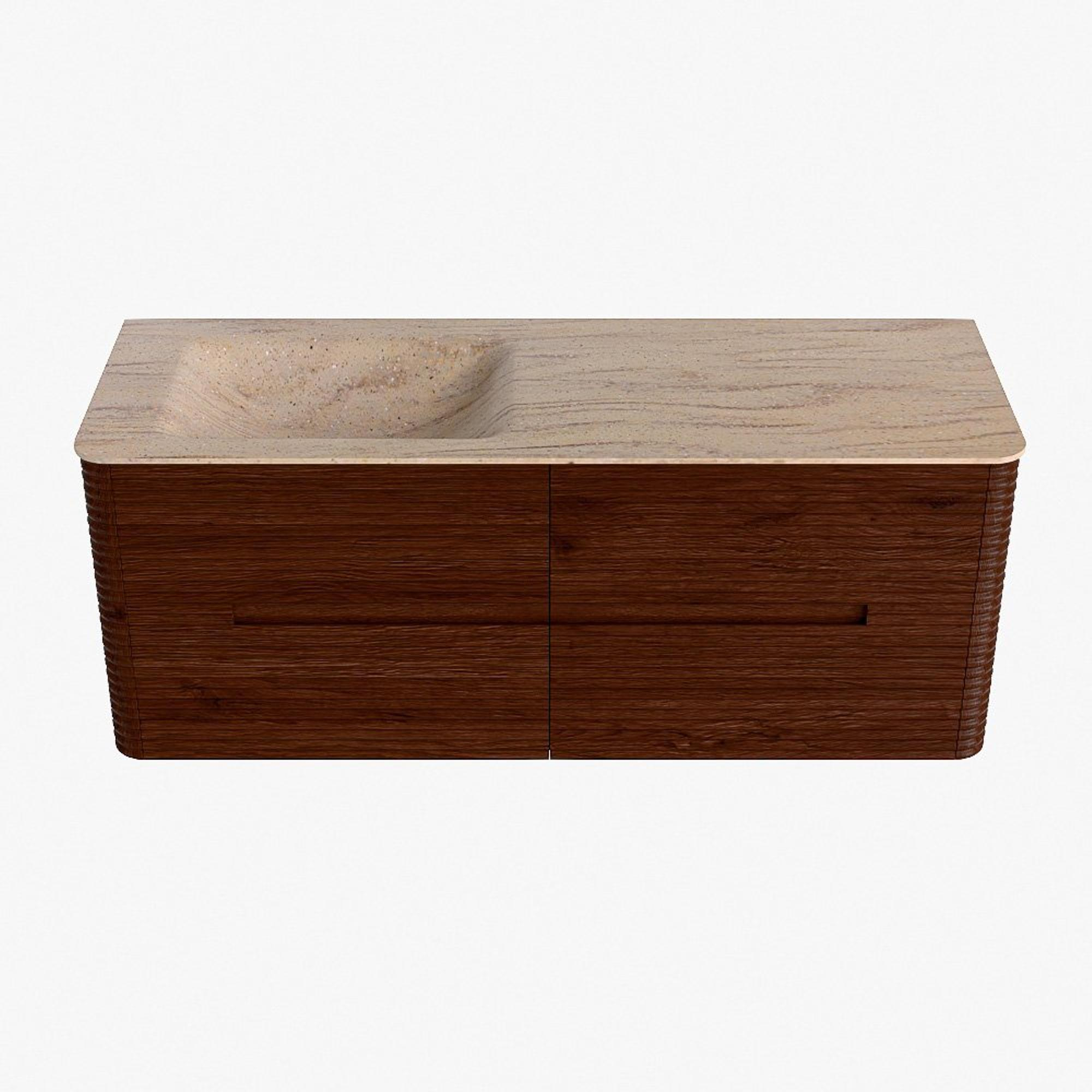 Mondiaz CIRO-DLUX Badkamermeubelset - 130x45x50cm - Solid surface wastafel Saba - 1 wasbak Links - 1 kraangat - 4 lades - Ruby
