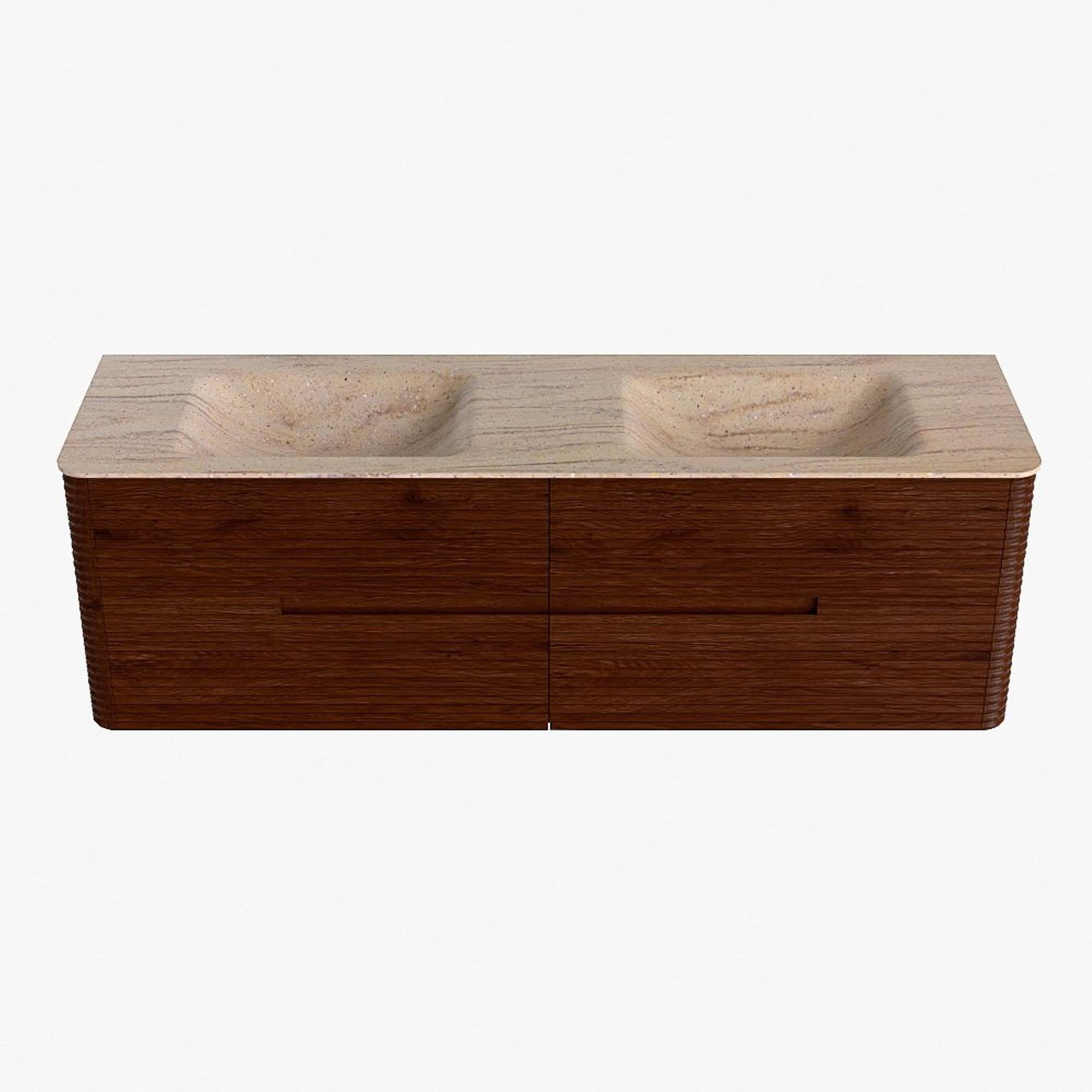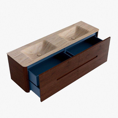 Mondiaz CIRO-DLUX Badkamermeubelset - 160x45x50cm - Solid surface wastafel Saba - 2 wasbak Dubbel - 2 kraangaten - 4 lades - Ruby