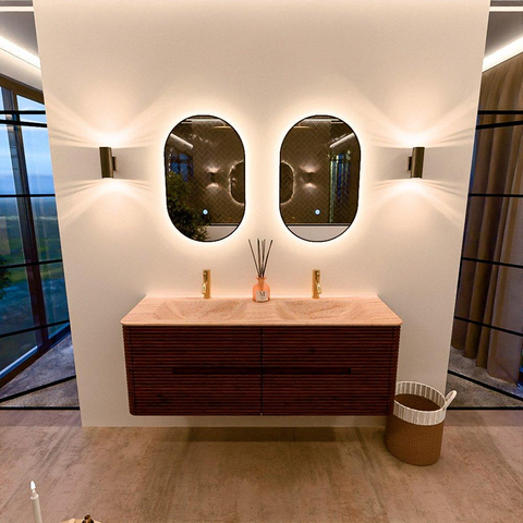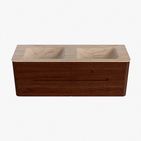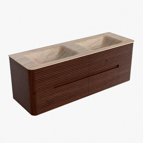 Mondiaz CIRO-DLUX Badkamermeubelset - 140x45x50cm - Solid surface wastafel Saba - 2 wasbak Dubbel - 2 kraangaten - 4 lades - Ruby