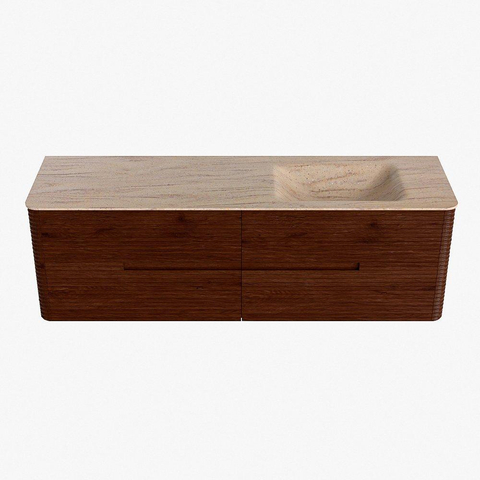 Mondiaz CIRO-DLUX Badkamermeubelset - 160x45x50cm - Solid surface wastafel Saba - 1 wasbak Rechts - zonder kraangaten - 4 lades - Ruby