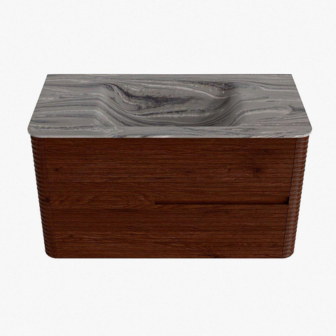 Mondiaz CIRO-DLUX Badkamermeubelset - 90x45x50cm - Solid surface wastafel Sombra - 1 wasbak Midden - zonder kraangaten - 2 lades - Ruby