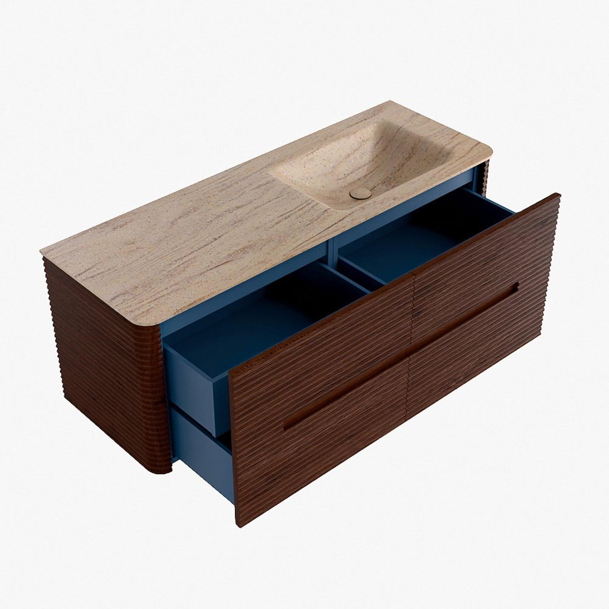 Functioneel gemak is een essentieel onderdeel van de CIRO-serie. Het meubel beschikt over een royale lade met extra binnen lade, ideaal voor het overzichtelijk opbergen van alle dagelijkse badkamerartikelen. Dankzij de geïntegreerde greep en het soft close-mechanisme blijft het front rustig, strak en elegant.