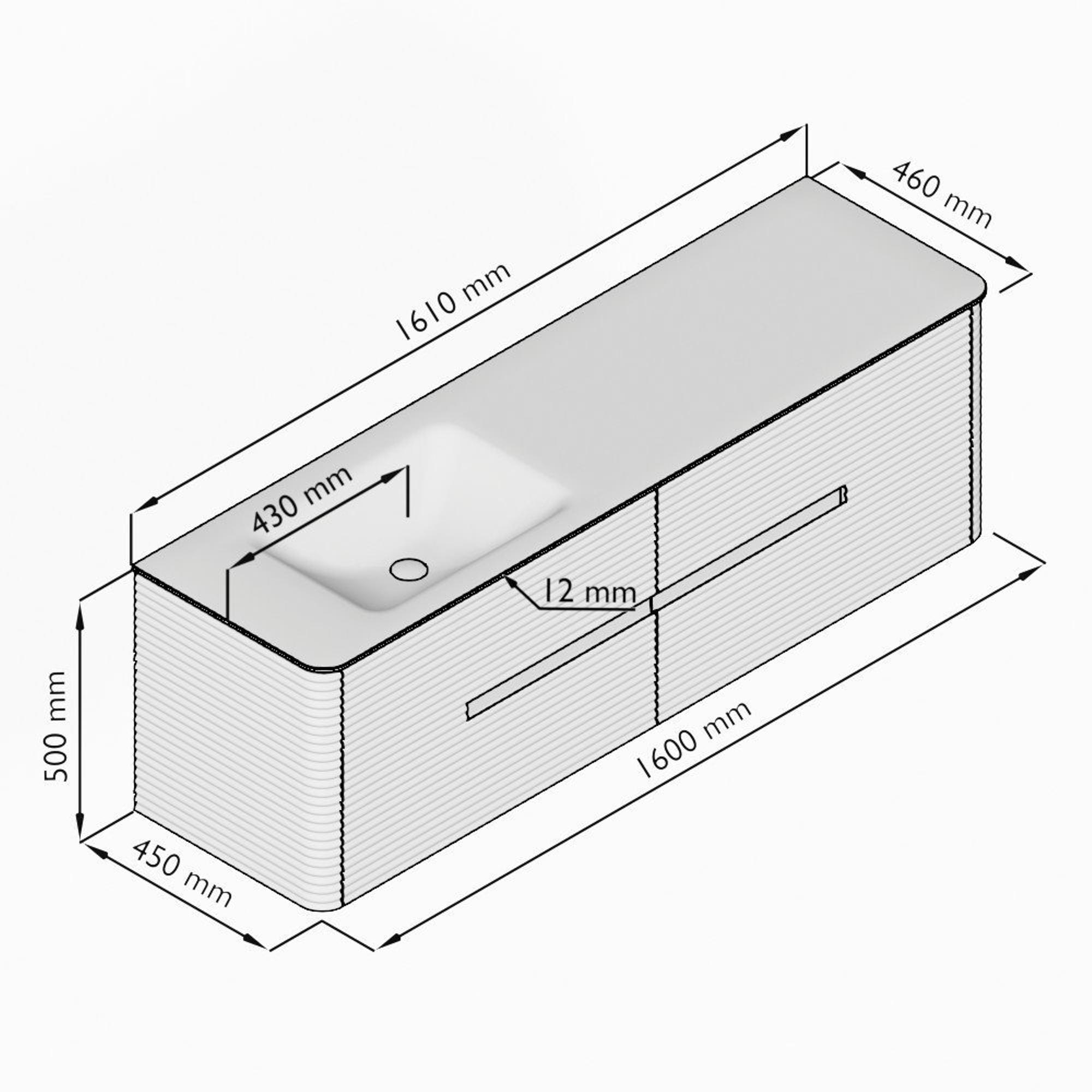 - Breedte wastafel: 161cm