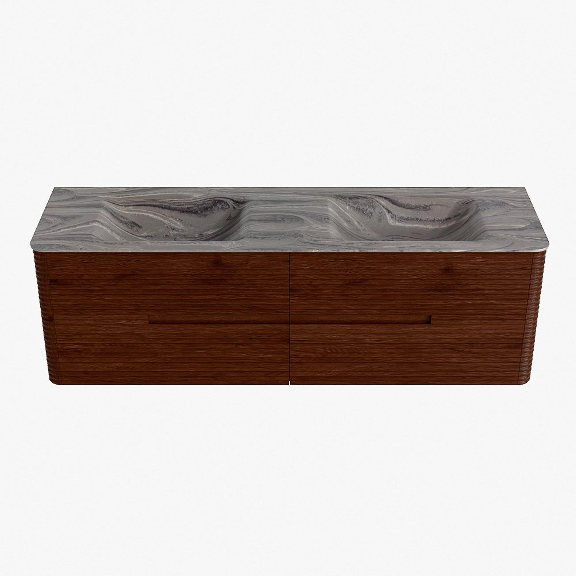 Mondiaz CIRO-DLUX Badkamermeubelset - 160x45x50cm - Solid surface wastafel Sombra - 2 wasbak Dubbel - zonder kraangaten - 4 lades - Ruby