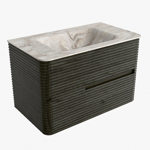 Mondiaz CIRO-DLUX Badkamermeubelset - 80x45x50cm - Solid surface wastafel Frappe - 1 wasbak Midden - 1 kraangat - 2 lades - Shadow