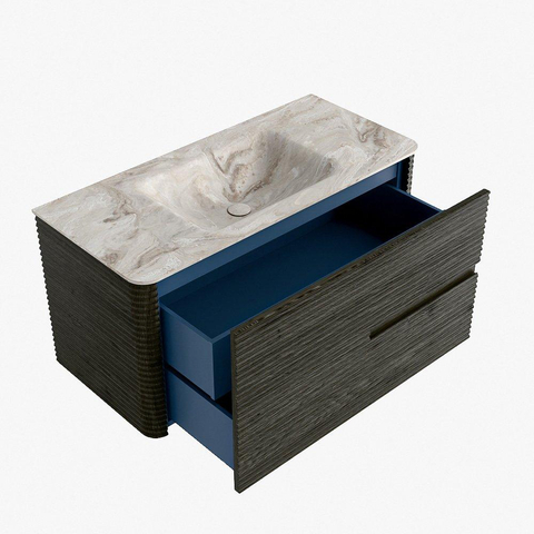 Mondiaz CIRO-DLUX Badkamermeubelset - 100x45x50cm - Solid surface wastafel Frappe - 1 wasbak Midden - zonder kraangaten - 2 lades - Shadow