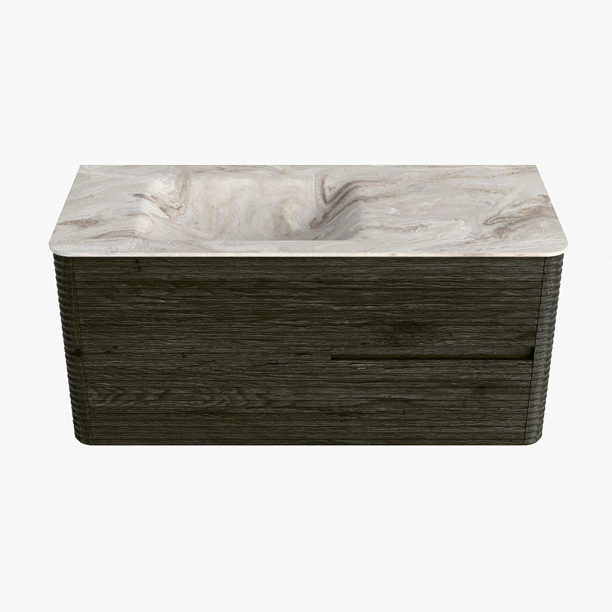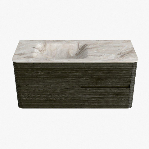 Mondiaz CIRO-DLUX Badkamermeubelset - 110x45x50cm - Solid surface wastafel Frappe - 1 wasbak Links - zonder kraangaten - 2 lades - Shadow