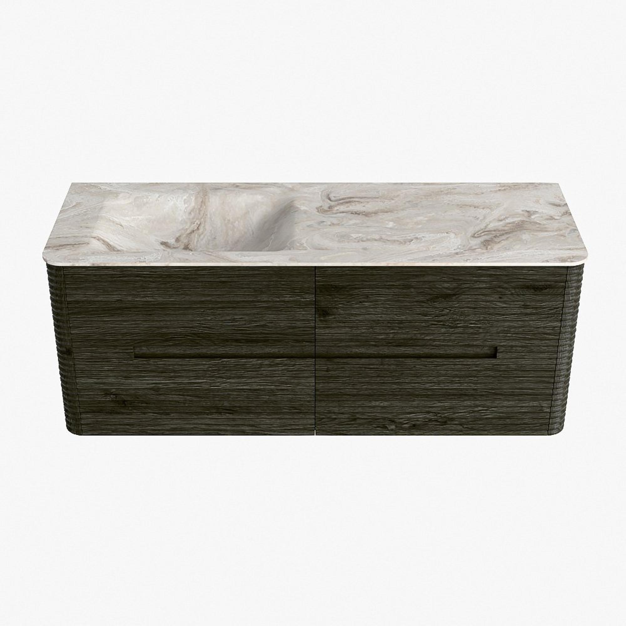 Mondiaz CIRO-DLUX Badkamermeubelset - 130x45x50cm - Solid surface wastafel Frappe - 1 wasbak Links - 1 kraangat - 4 lades - Shadow