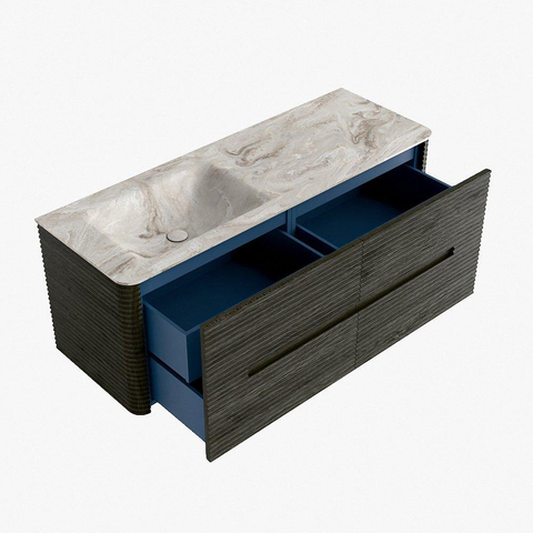 Functioneel gemak is een essentieel onderdeel van de CIRO-serie. Het meubel beschikt over een royale lade met extra binnen lade, ideaal voor het overzichtelijk opbergen van alle dagelijkse badkamerartikelen. Dankzij de geïntegreerde greep en het soft close-mechanisme blijft het front rustig, strak en elegant.