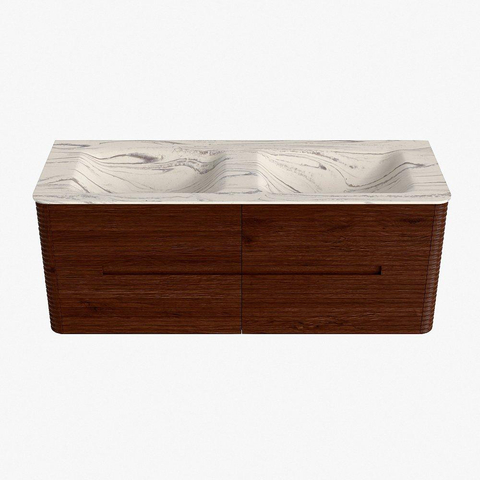 Mondiaz CIRO-DLUX Badkamermeubelset - 130x45x50cm - Solid surface wastafel Nata - 2 wasbak Dubbel - 2 kraangaten - 4 lades - Ruby