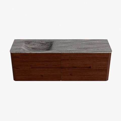Mondiaz CIRO-DLUX Badkamermeubelset - 150x45x50cm - Solid surface wastafel Oza - 1 wasbak Links - zonder kraangaten - 4 lades - Ruby