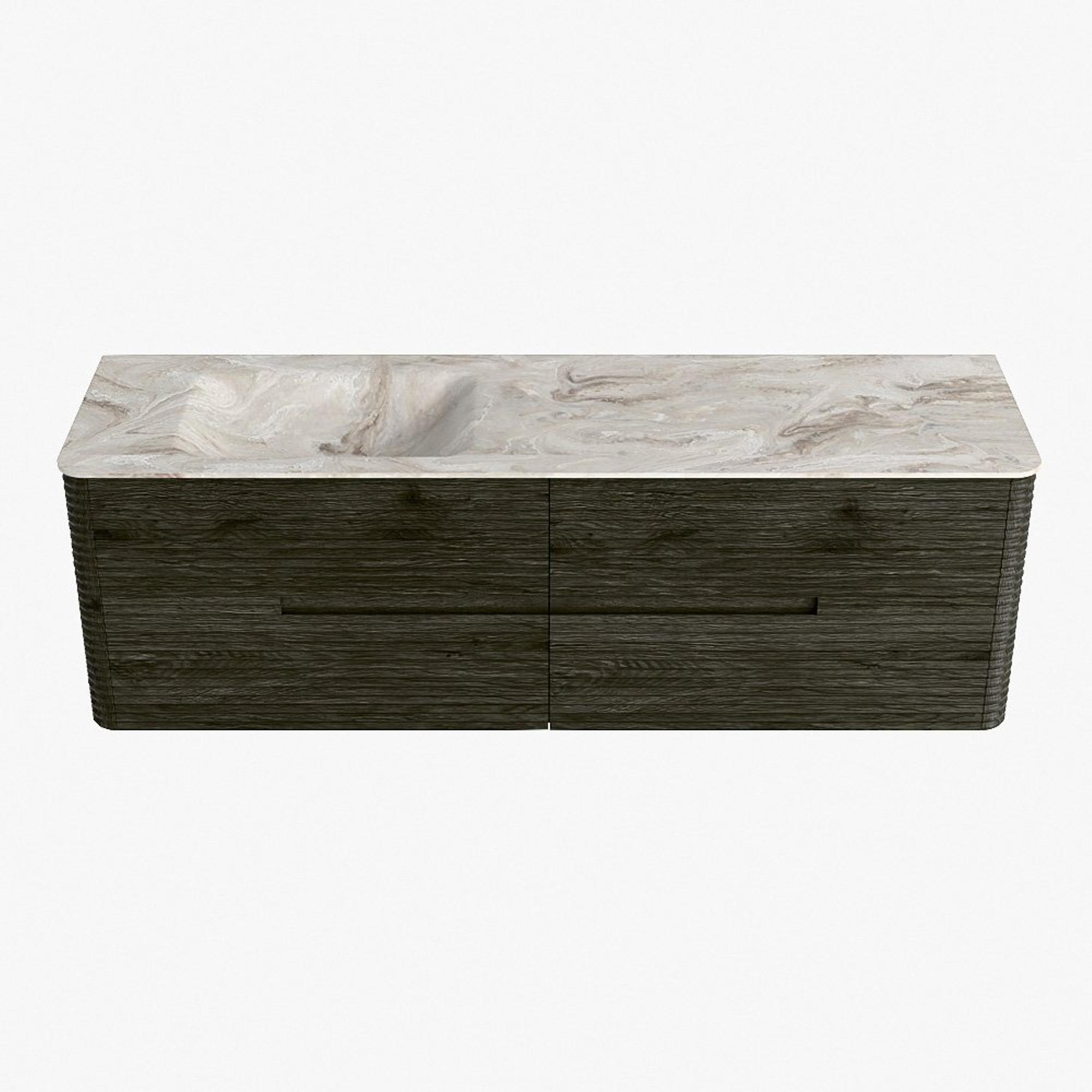 Mondiaz CIRO-DLUX Badkamermeubelset - 160x45x50cm - Solid surface wastafel Frappe - 1 wasbak Links - 1 kraangat - 4 lades - Shadow