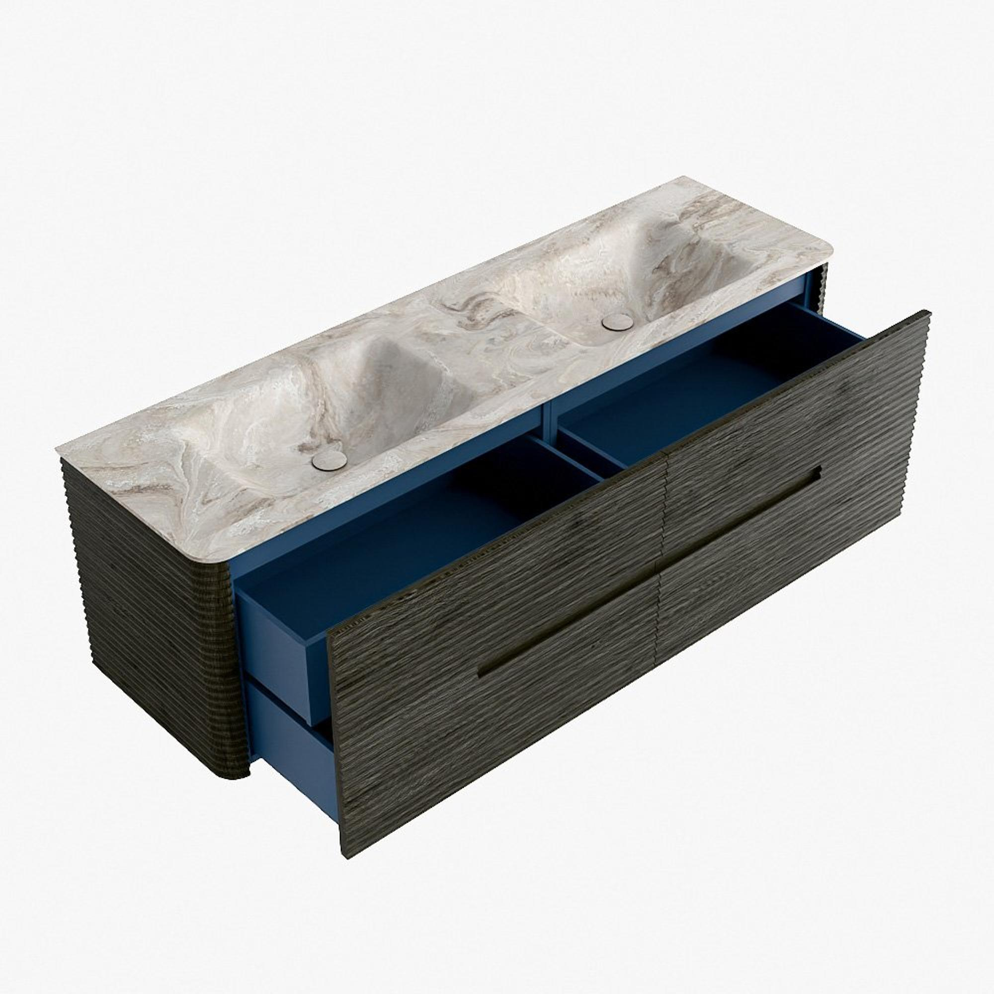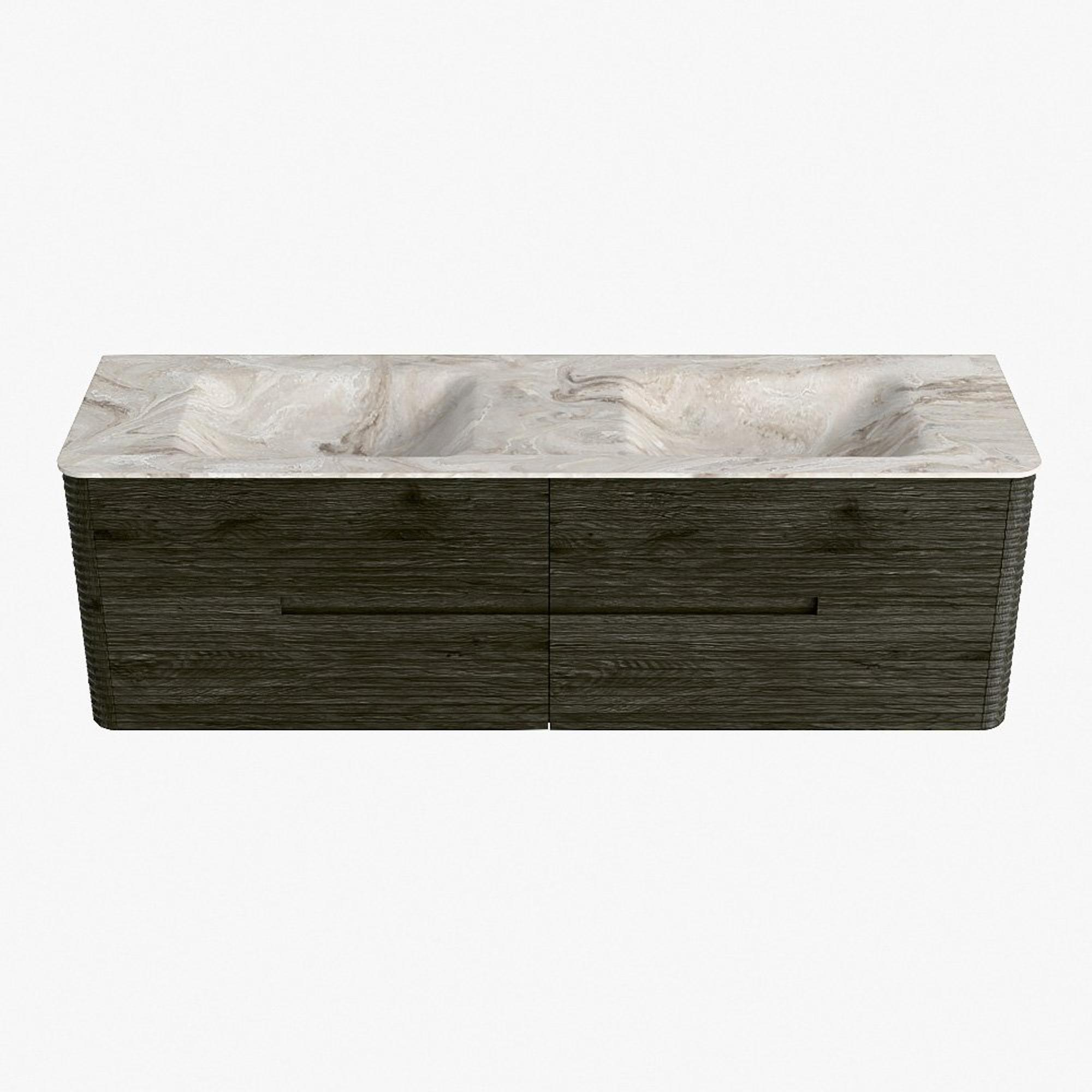 Mondiaz CIRO-DLUX Badkamermeubelset - 160x45x50cm - Solid surface wastafel Frappe - 2 wasbak Dubbel - 2 kraangaten - 4 lades - Shadow