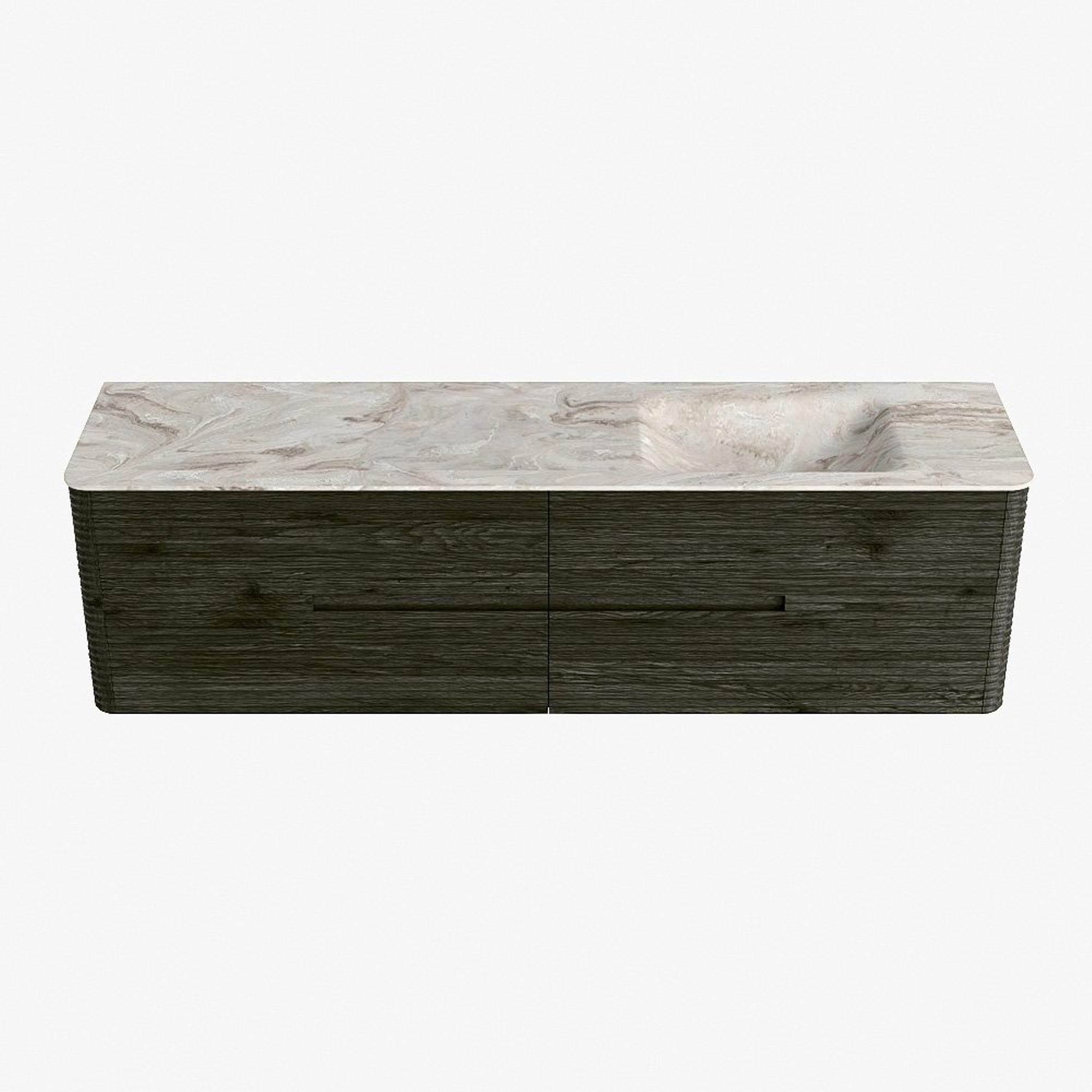 Mondiaz CIRO-DLUX Badkamermeubelset - 180x45x50cm - Solid surface wastafel Frappe - 1 wasbak Rechts - zonder kraangaten - 4 lades - Shadow