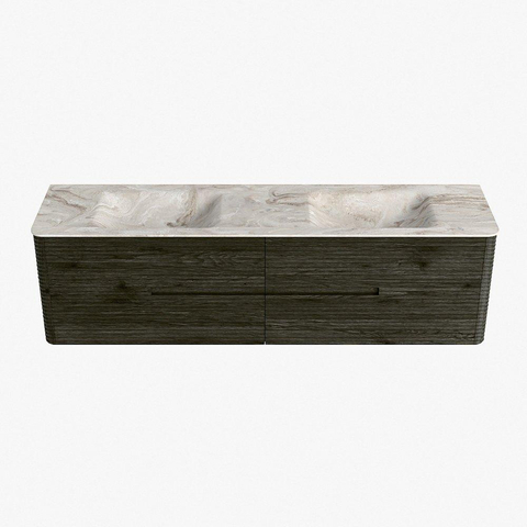 Mondiaz CIRO-DLUX Badkamermeubelset - 180x45x50cm - Solid surface wastafel Frappe - 2 wasbak Dubbel - zonder kraangaten - 4 lades - Shadow