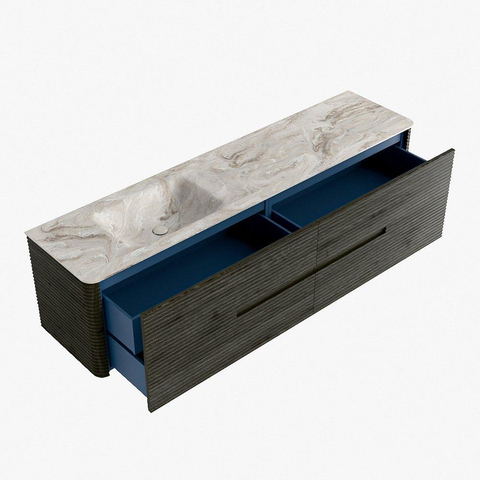 Functioneel gemak is een essentieel onderdeel van de CIRO-serie. Het meubel beschikt over een royale lade met extra binnen lade, ideaal voor het overzichtelijk opbergen van alle dagelijkse badkamerartikelen. Dankzij de geïntegreerde greep en het soft close-mechanisme blijft het front rustig, strak en elegant.