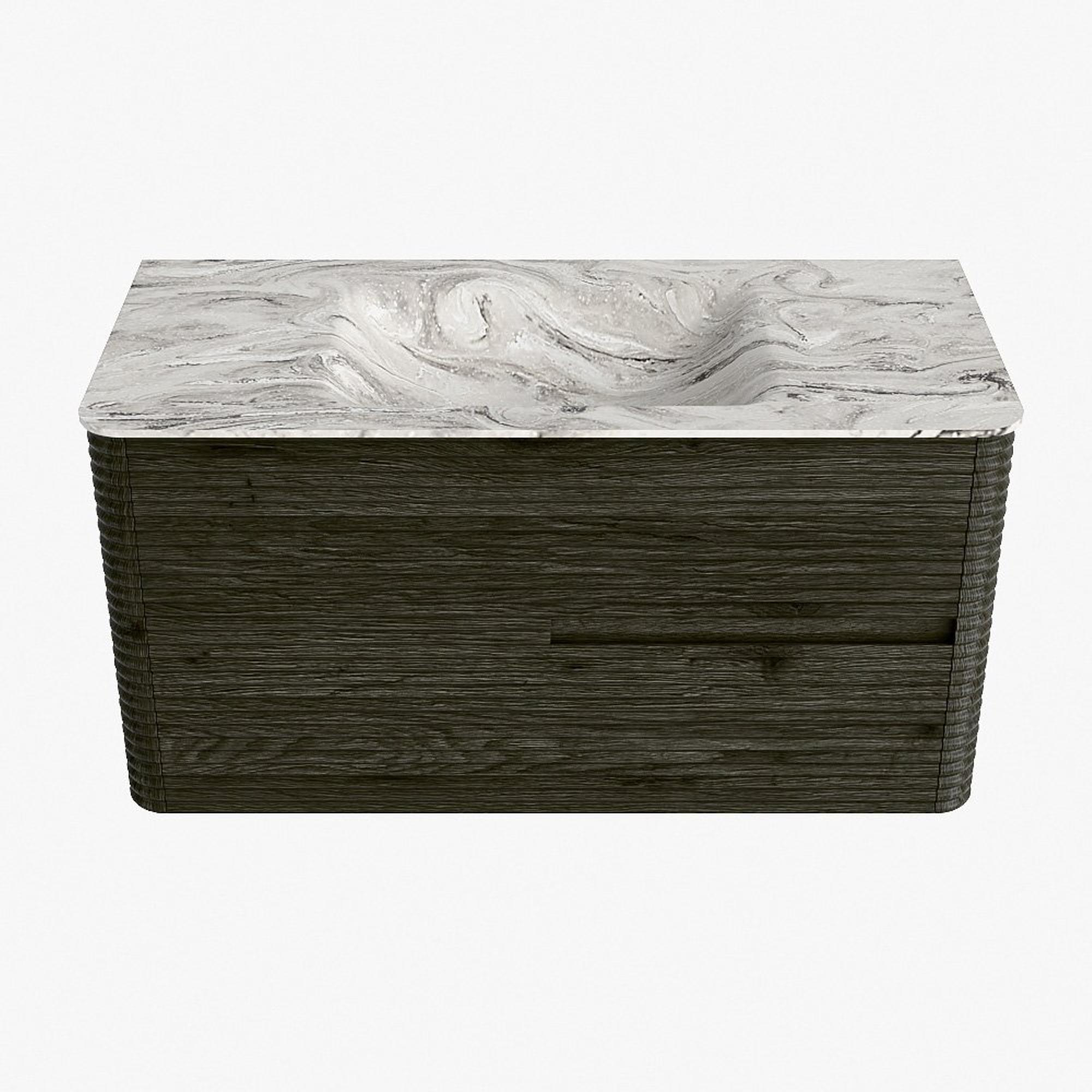 Mondiaz CIRO-DLUX Badkamermeubelset - 100x45x50cm - Solid surface wastafel Glace - 1 wasbak Midden - zonder kraangaten - 2 lades - Shadow