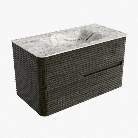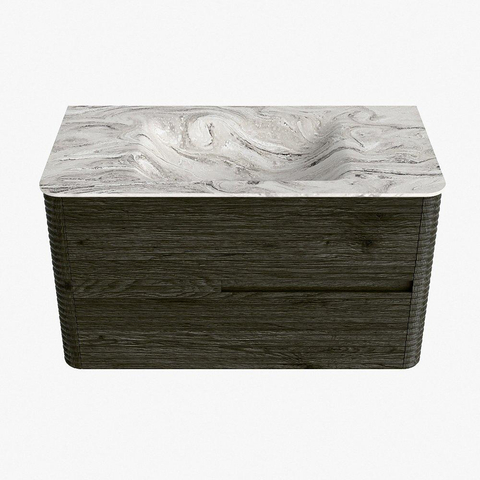 Mondiaz CIRO-DLUX Badkamermeubelset - 90x45x50cm - Solid surface wastafel Glace - 1 wasbak Midden - zonder kraangaten - 2 lades - Shadow