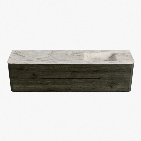 Mondiaz CIRO-DLUX Badkamermeubelset - 190x45x50cm - Solid surface wastafel Frappe - 1 wasbak Rechts - zonder kraangaten - 4 lades - Shadow