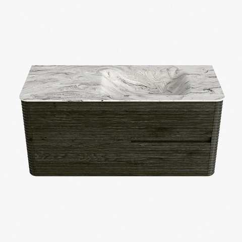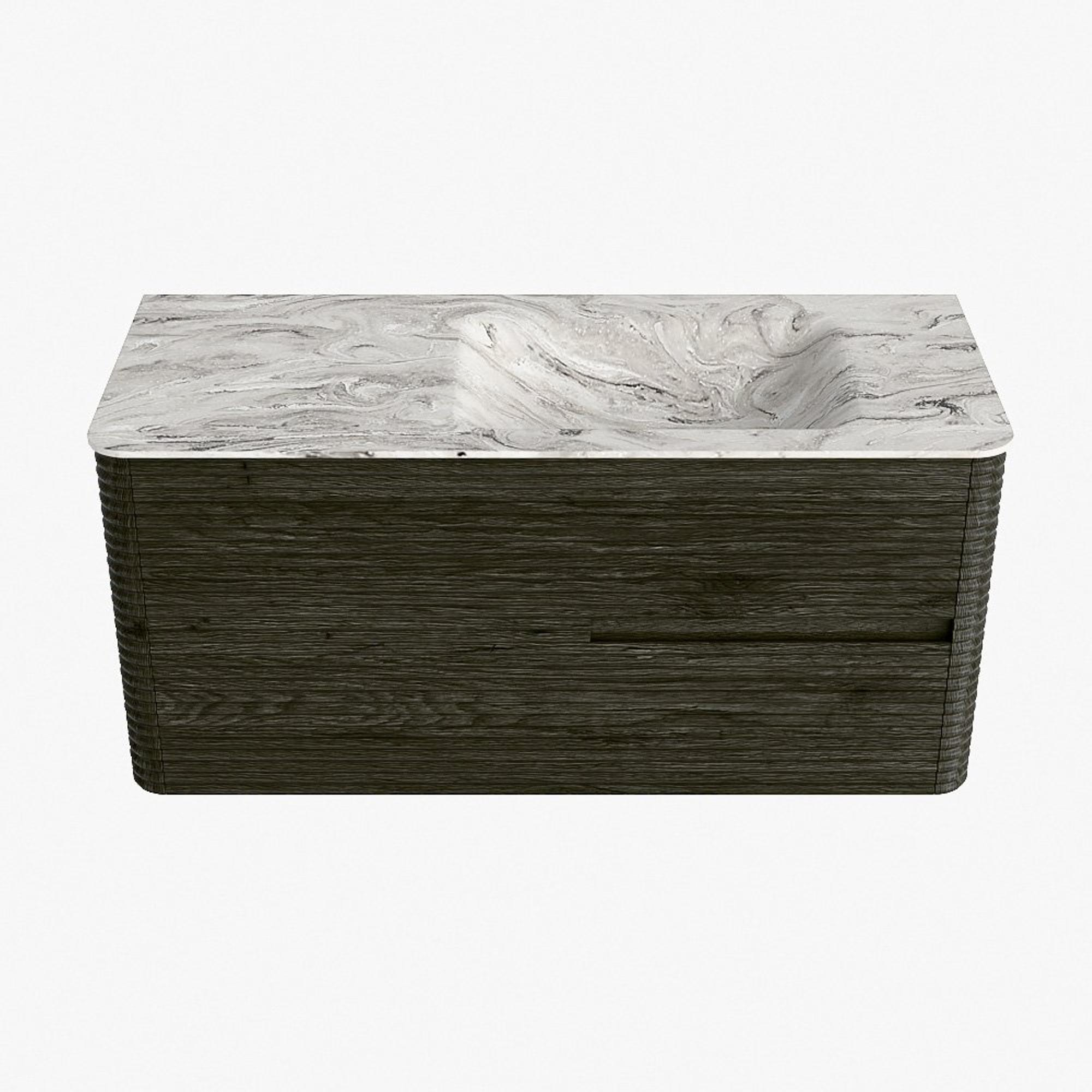 Mondiaz CIRO-DLUX Badkamermeubelset - 110x45x50cm - Solid surface wastafel Glace - 1 wasbak Rechts - 1 kraangat - 2 lades - Shadow