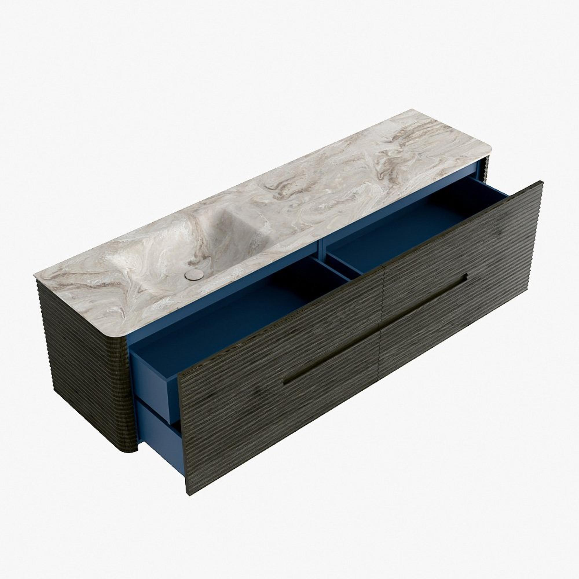 Functioneel gemak is een essentieel onderdeel van de CIRO-serie. Het meubel beschikt over een royale lade met extra binnen lade, ideaal voor het overzichtelijk opbergen van alle dagelijkse badkamerartikelen. Dankzij de geïntegreerde greep en het soft close-mechanisme blijft het front rustig, strak en elegant.