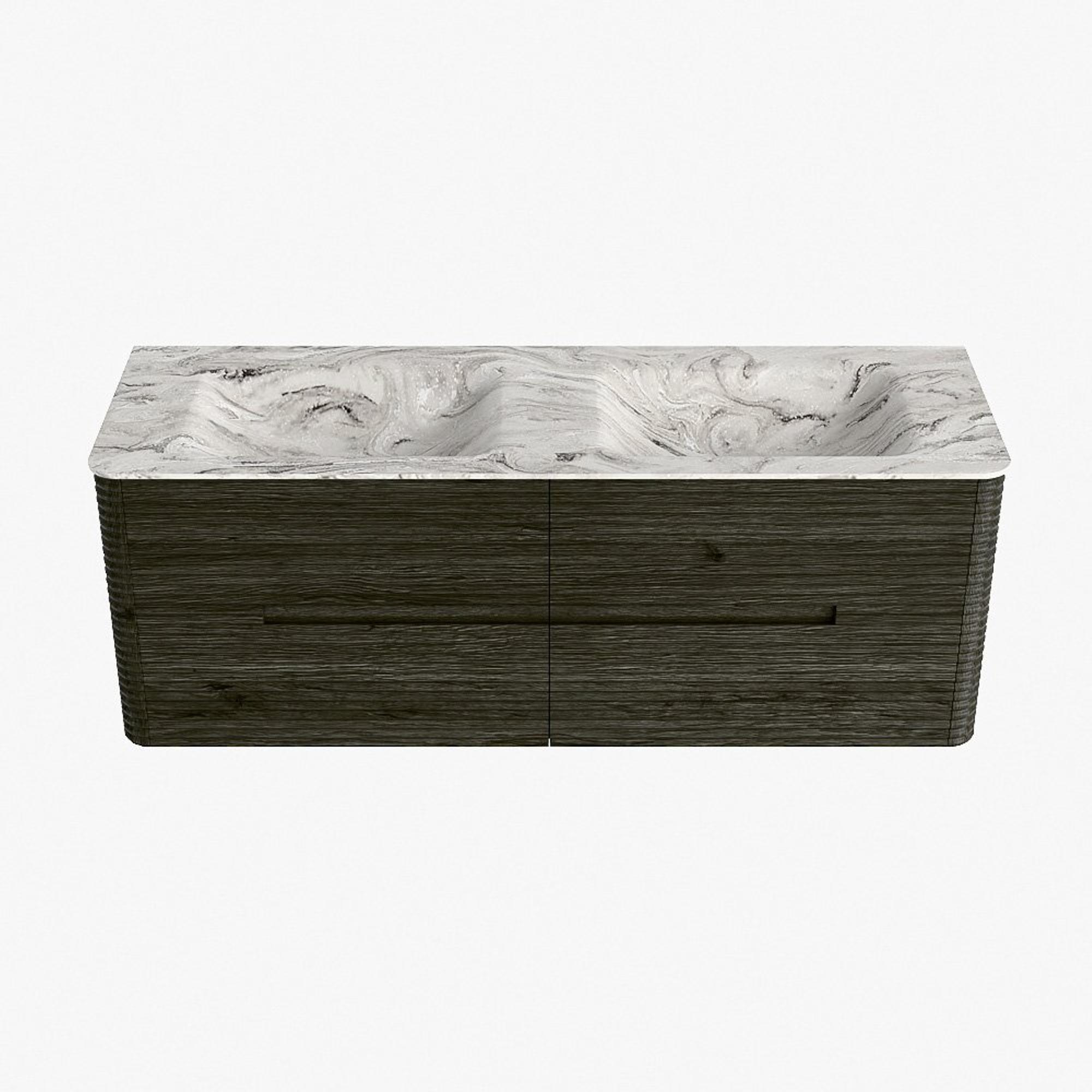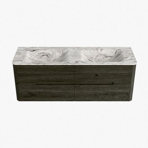 Mondiaz CIRO-DLUX Badkamermeubelset - 140x45x50cm - Solid surface wastafel Glace - 2 wasbak Dubbel - zonder kraangaten - 4 lades - Shadow