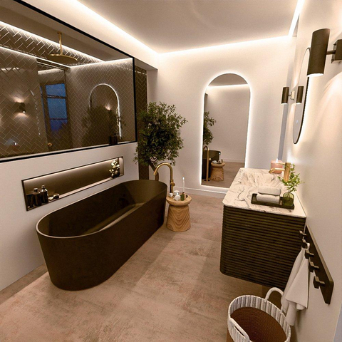 De wastafels van de CIRO-lijn worden vervaardigd uit hoogwaardig Solid Surface, een materiaal dat bekendstaat om zijn strakke uitstraling, hygiënische eigenschappen en uitstekende duurzaamheid. De wastafels zijn beschikbaar in 11 marmer- en travertin tinten, waarmee je het luxueuze karakter van natuursteen combineert met de voordelen van Solid Surface. De organische vorm van de kom versterkt het serene, sculpturale karakter van het ontwerp.