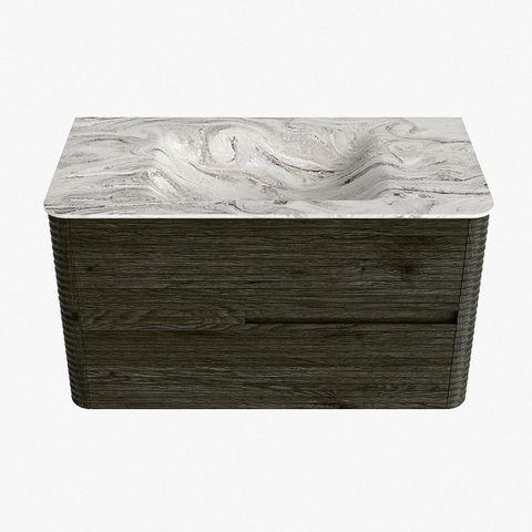 Mondiaz CIRO-DLUX Badkamermeubelset - 90x45x50cm - Solid surface wastafel Glace - 1 wasbak Midden - 1 kraangat - 2 lades - Shadow