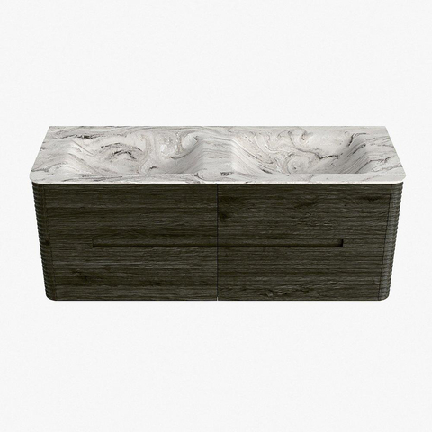 Mondiaz CIRO-DLUX Badkamermeubelset - 130x45x50cm - Solid surface wastafel Glace - 2 wasbak Dubbel - zonder kraangaten - 4 lades - Shadow