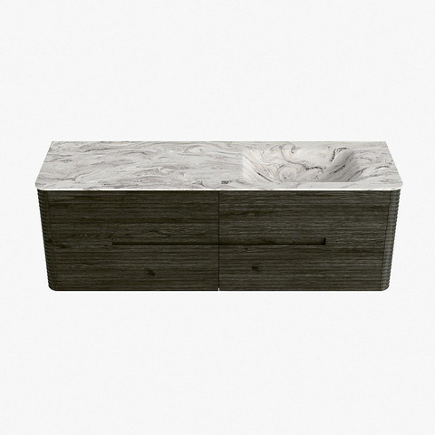 Mondiaz CIRO-DLUX Badkamermeubelset - 150x45x50cm - Solid surface wastafel Glace - 1 wasbak Rechts - zonder kraangaten - 4 lades - Shadow