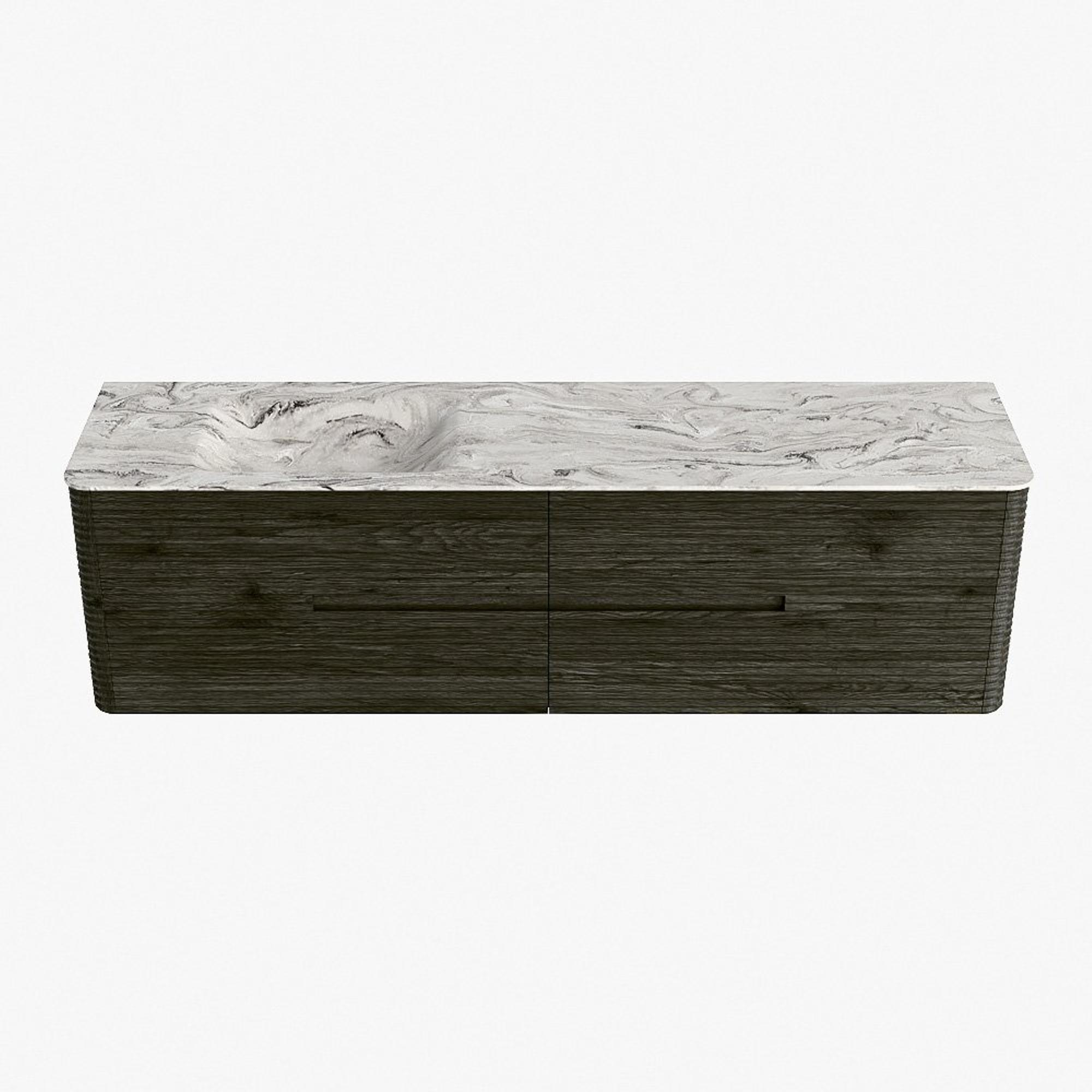 Mondiaz CIRO-DLUX Badkamermeubelset - 180x45x50cm - Solid surface wastafel Glace - 1 wasbak Links - 1 kraangat - 4 lades - Shadow