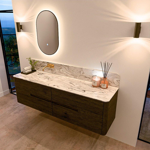 De wastafels van de CIRO-lijn worden vervaardigd uit hoogwaardig Solid Surface, een materiaal dat bekendstaat om zijn strakke uitstraling, hygiënische eigenschappen en uitstekende duurzaamheid. De wastafels zijn beschikbaar in 11 marmer- en travertin tinten, waarmee je het luxueuze karakter van natuursteen combineert met de voordelen van Solid Surface. De organische vorm van de kom versterkt het serene, sculpturale karakter van het ontwerp.