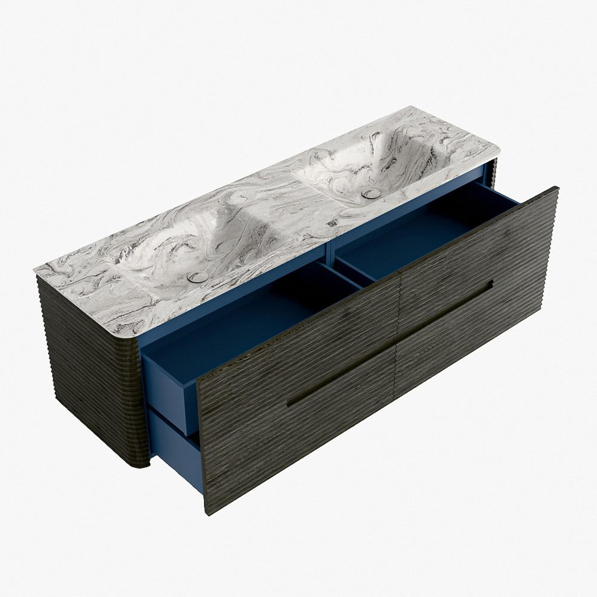 Mondiaz CIRO-DLUX Badkamermeubelset - 160x45x50cm - Solid surface wastafel Glace - 2 wasbak Dubbel - zonder kraangaten - 4 lades - Shadow