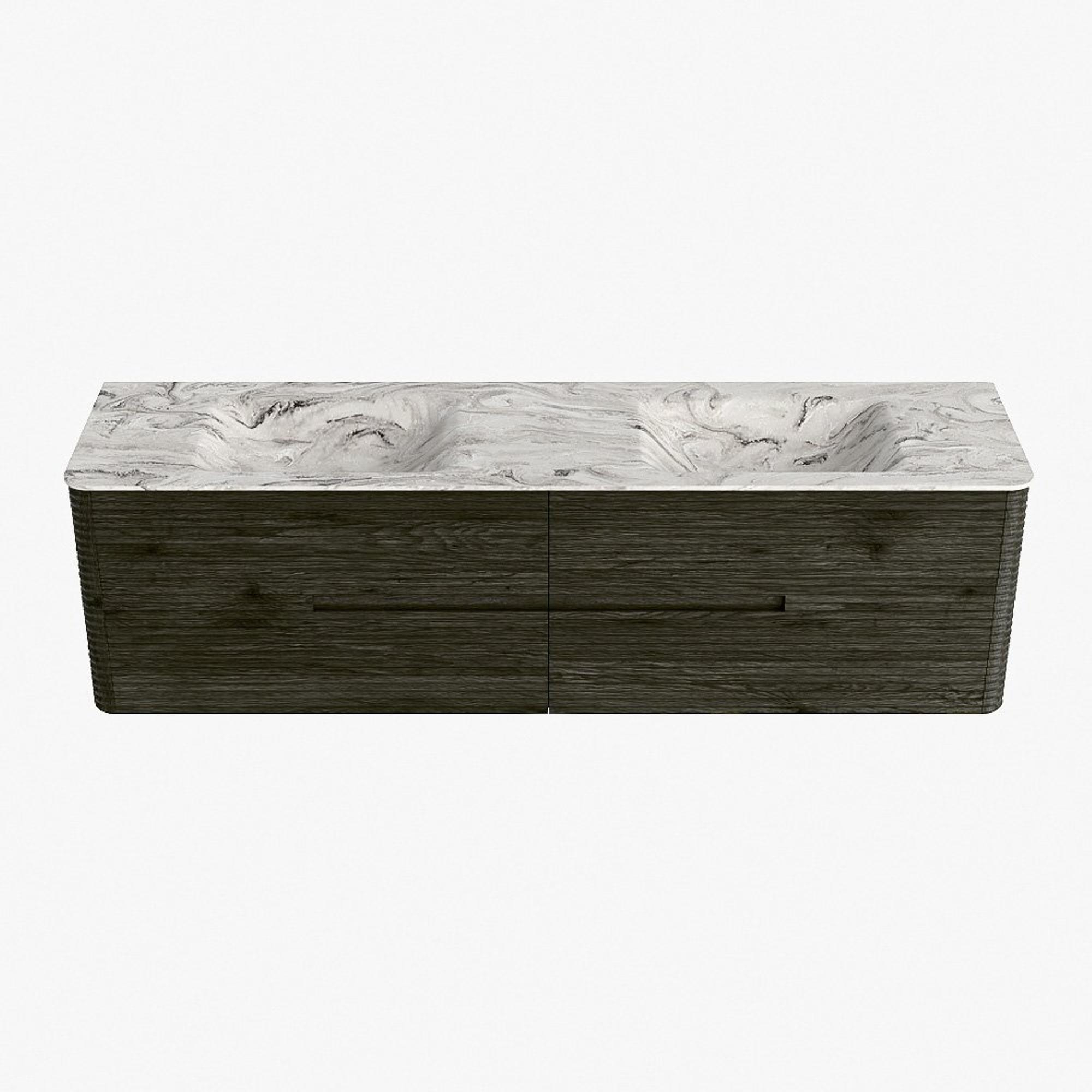 Mondiaz CIRO-DLUX Badkamermeubelset - 180x45x50cm - Solid surface wastafel Glace - 2 wasbak Dubbel - zonder kraangaten - 4 lades - Shadow