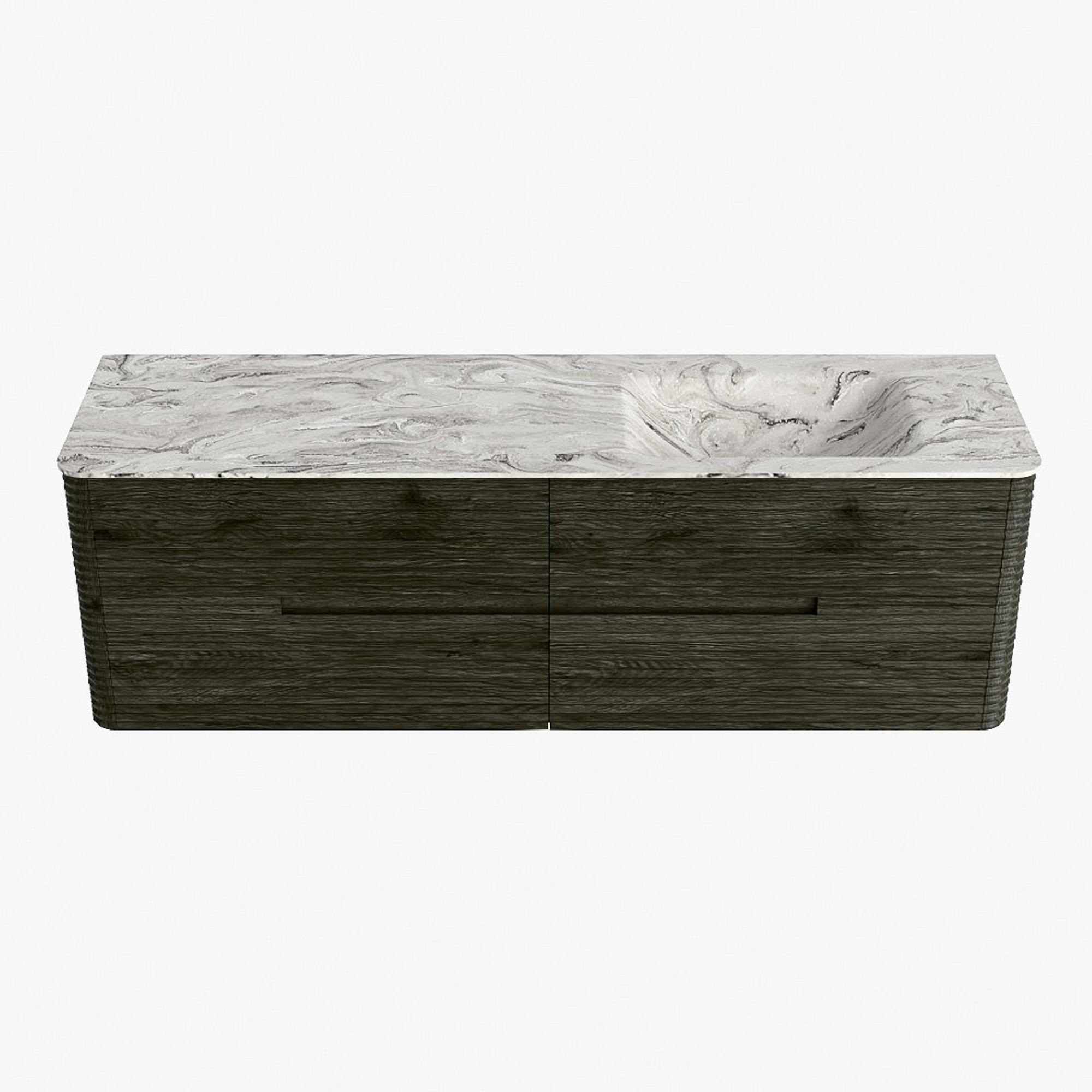 Mondiaz CIRO-DLUX Badkamermeubelset - 160x45x50cm - Solid surface wastafel Glace - 1 wasbak Rechts - zonder kraangaten - 4 lades - Shadow