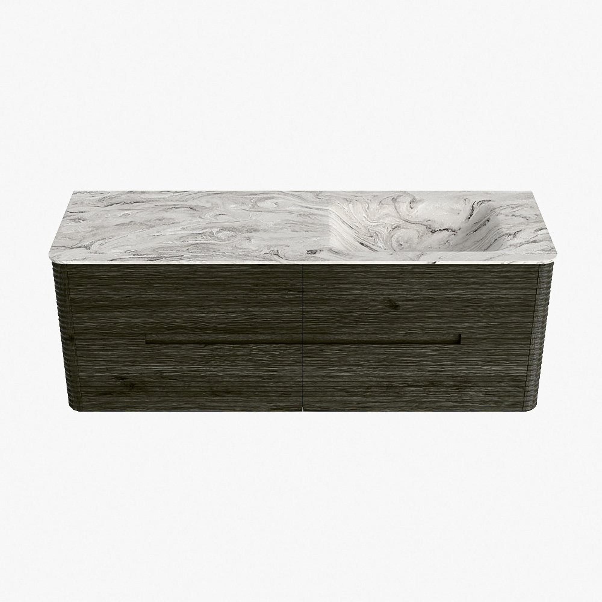 Mondiaz CIRO-DLUX Badkamermeubelset - 140x45x50cm - Solid surface wastafel Glace - 1 wasbak Rechts - 1 kraangat - 4 lades - Shadow