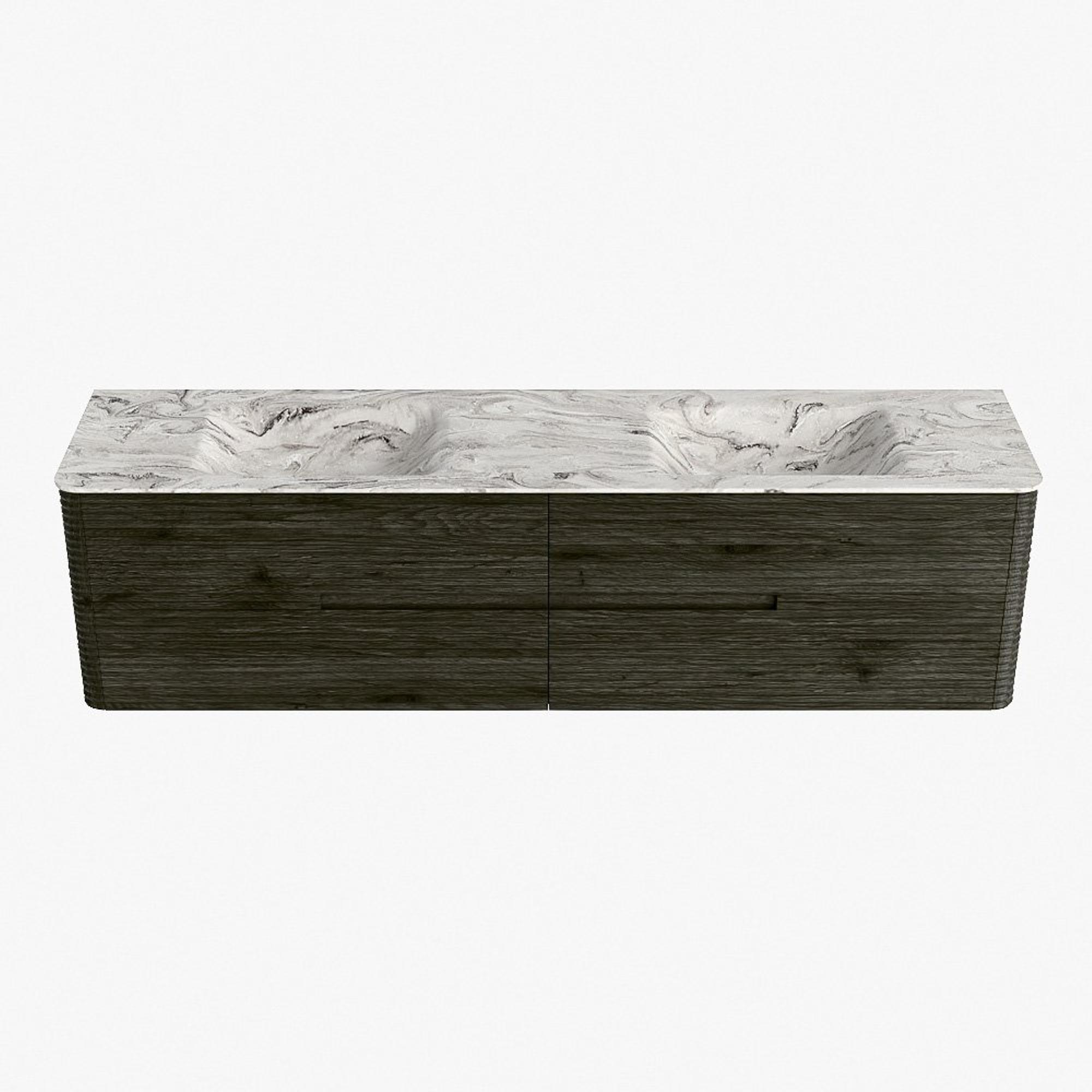 Mondiaz CIRO-DLUX Badkamermeubelset - 190x45x50cm - Solid surface wastafel Glace - 2 wasbak Dubbel - zonder kraangaten - 4 lades - Shadow