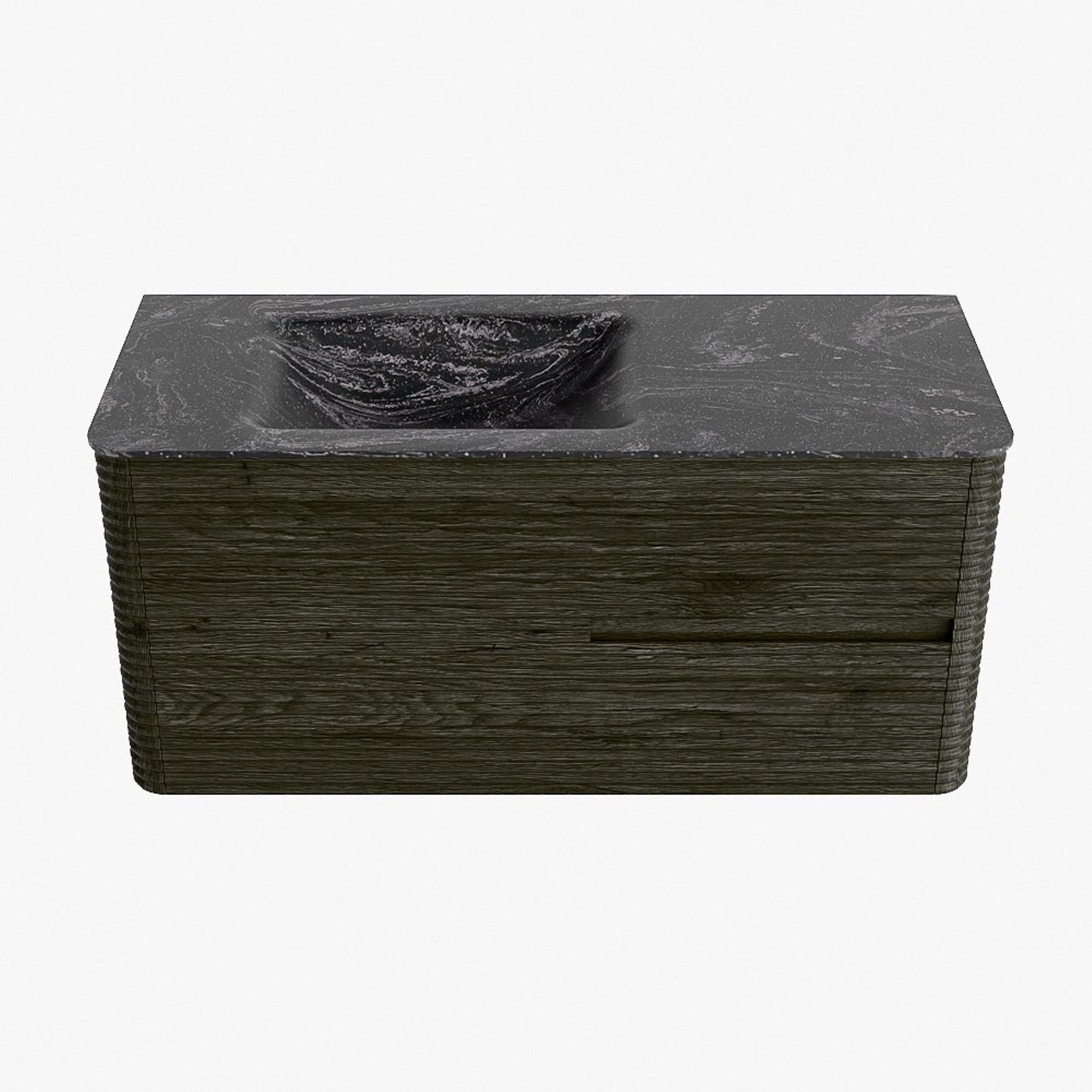 Mondiaz CIRO-DLUX Badkamermeubelset - 110x45x50cm - Solid surface wastafel Lava - 1 wasbak Links - zonder kraangaten - 2 lades - Shadow