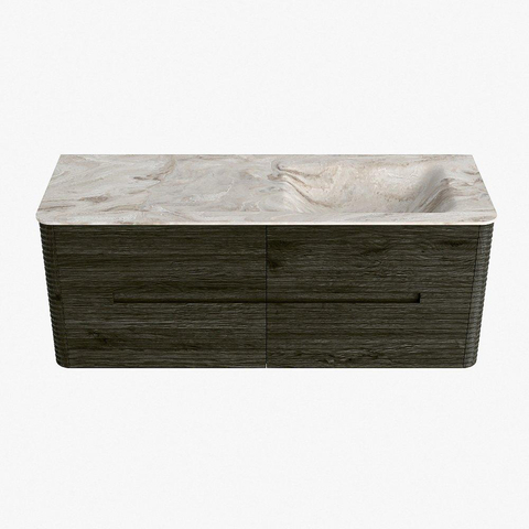 Mondiaz CIRO-DLUX Badkamermeubelset - 130x45x50cm - Solid surface wastafel Frappe - 1 wasbak Rechts - zonder kraangaten - 4 lades - Shadow