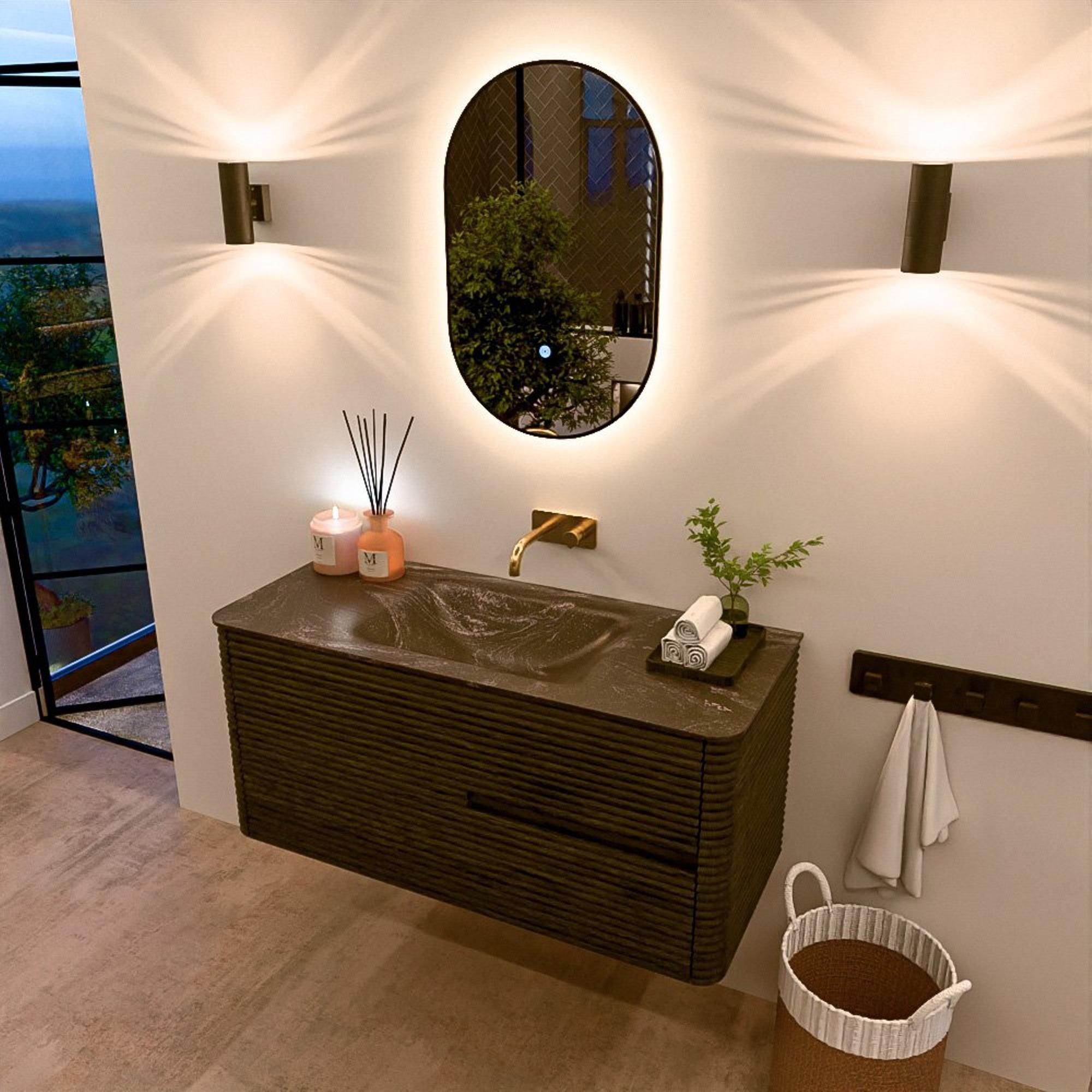 Mondiaz CIRO-DLUX Badkamermeubelset - 110x45x50cm - Solid surface wastafel Lava - 1 wasbak Midden - zonder kraangaten - 2 lades - Shadow