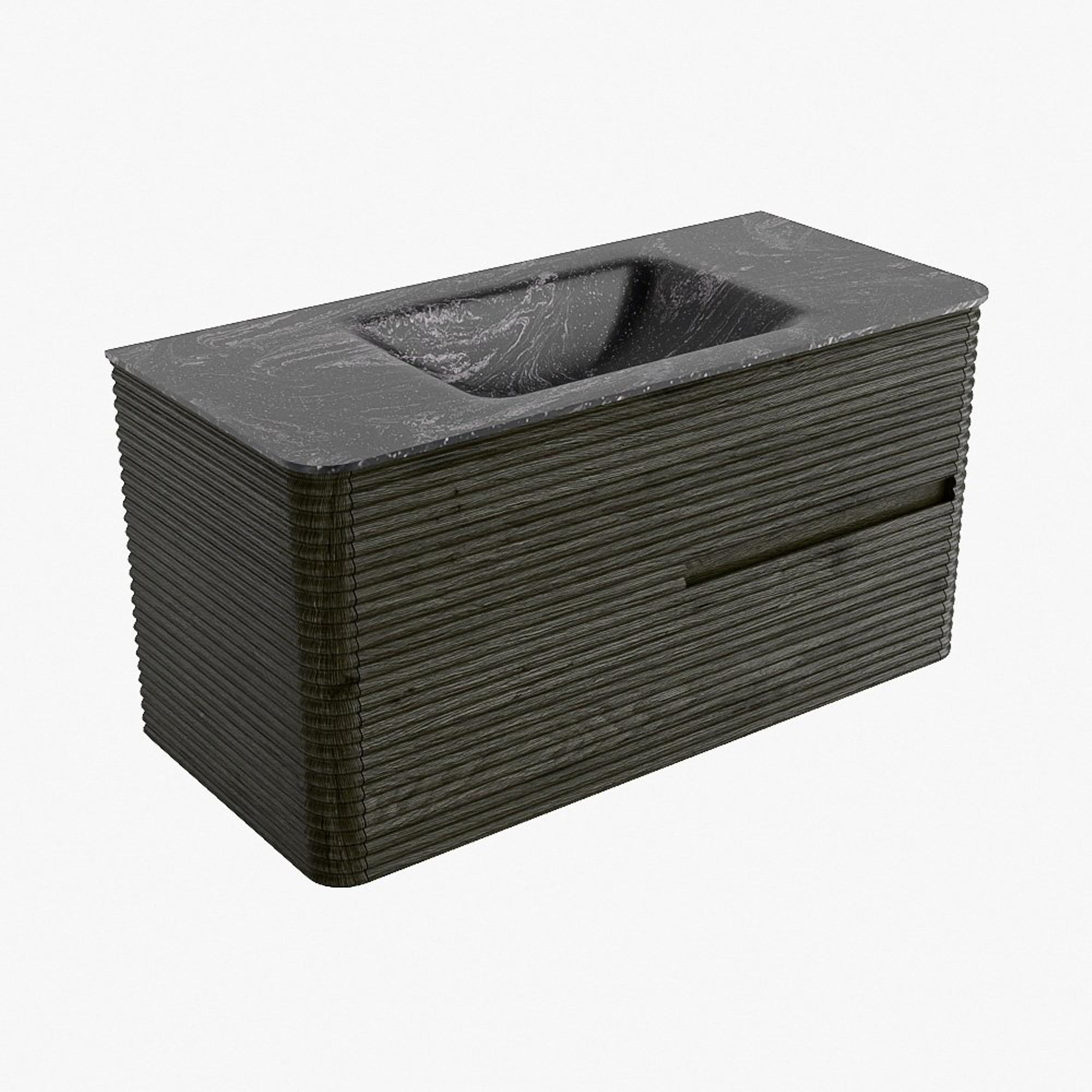 Mondiaz CIRO-DLUX Badkamermeubelset - 100x45x50cm - Solid surface wastafel Lava - 1 wasbak Midden - 1 kraangat - 2 lades - Shadow