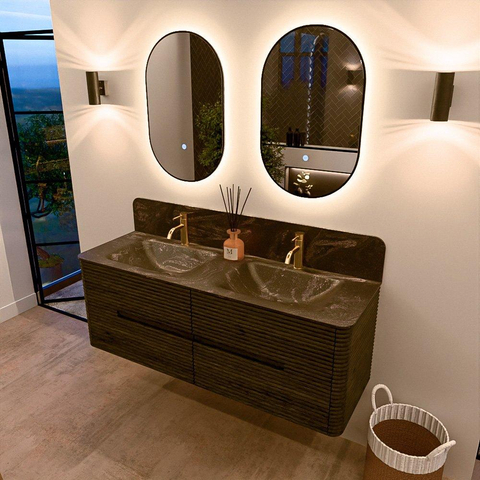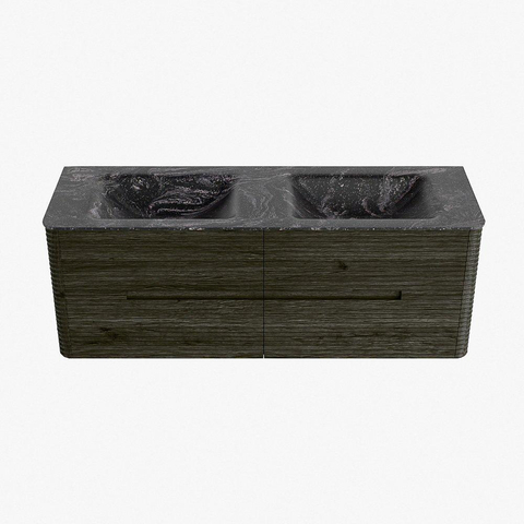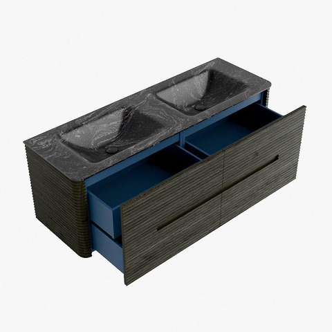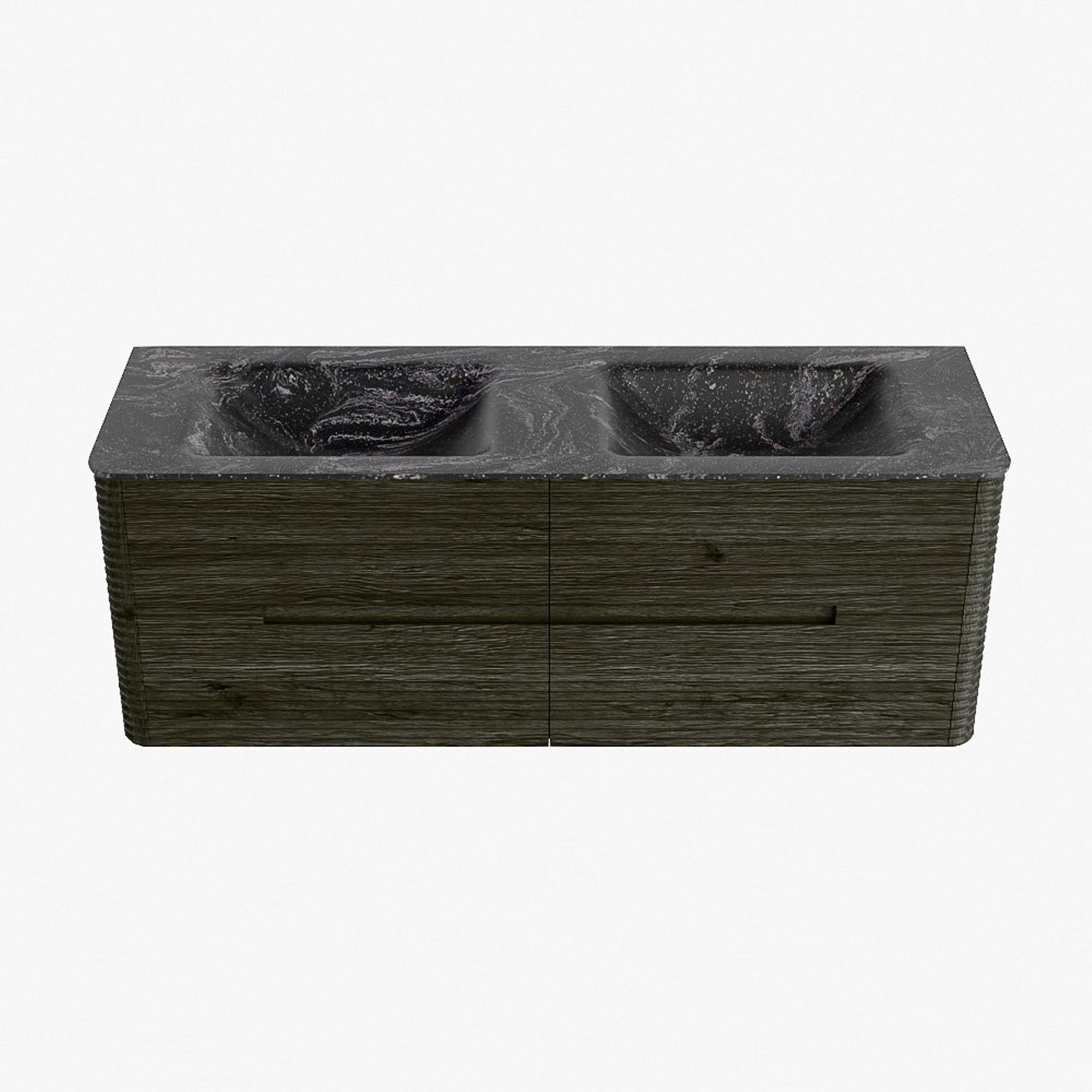 Mondiaz CIRO-DLUX Badkamermeubelset - 140x45x50cm - Solid surface wastafel Lava - 2 wasbak Dubbel - 2 kraangaten - 4 lades - Shadow