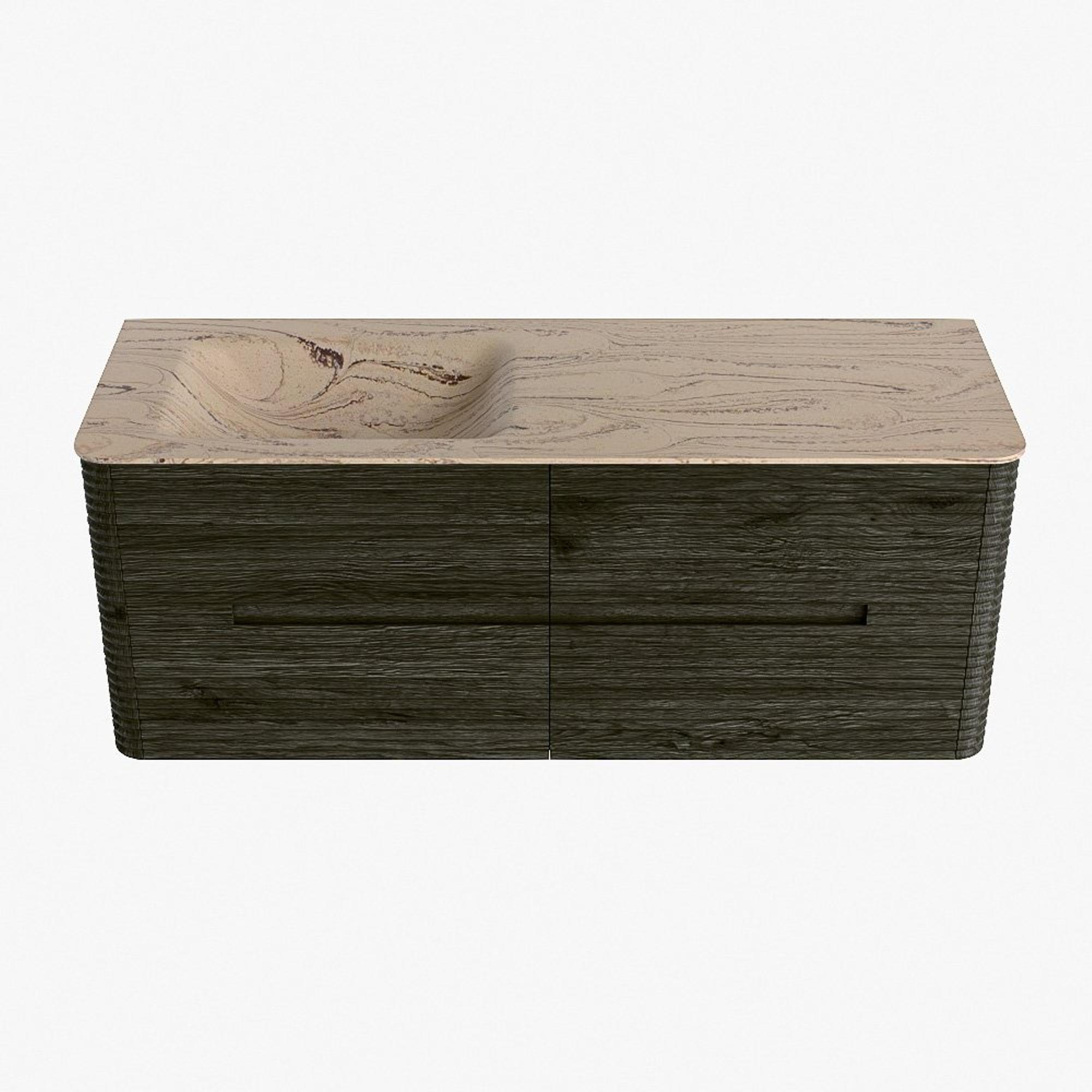 Mondiaz CIRO-DLUX Badkamermeubelset - 130x45x50cm - Solid surface wastafel Arena - 1 wasbak Links - zonder kraangaten - 4 lades - Shadow