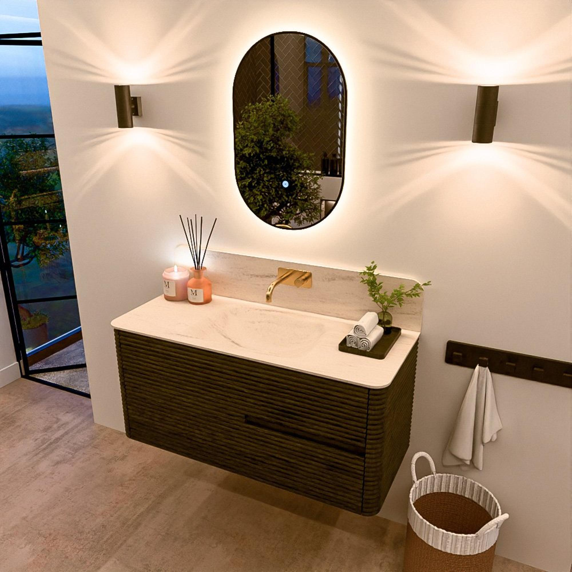 De wastafels van de CIRO-lijn worden vervaardigd uit hoogwaardig Solid Surface, een materiaal dat bekendstaat om zijn strakke uitstraling, hygiënische eigenschappen en uitstekende duurzaamheid. De wastafels zijn beschikbaar in 11 marmer- en travertin tinten, waarmee je het luxueuze karakter van natuursteen combineert met de voordelen van Solid Surface. De organische vorm van de kom versterkt het serene, sculpturale karakter van het ontwerp.