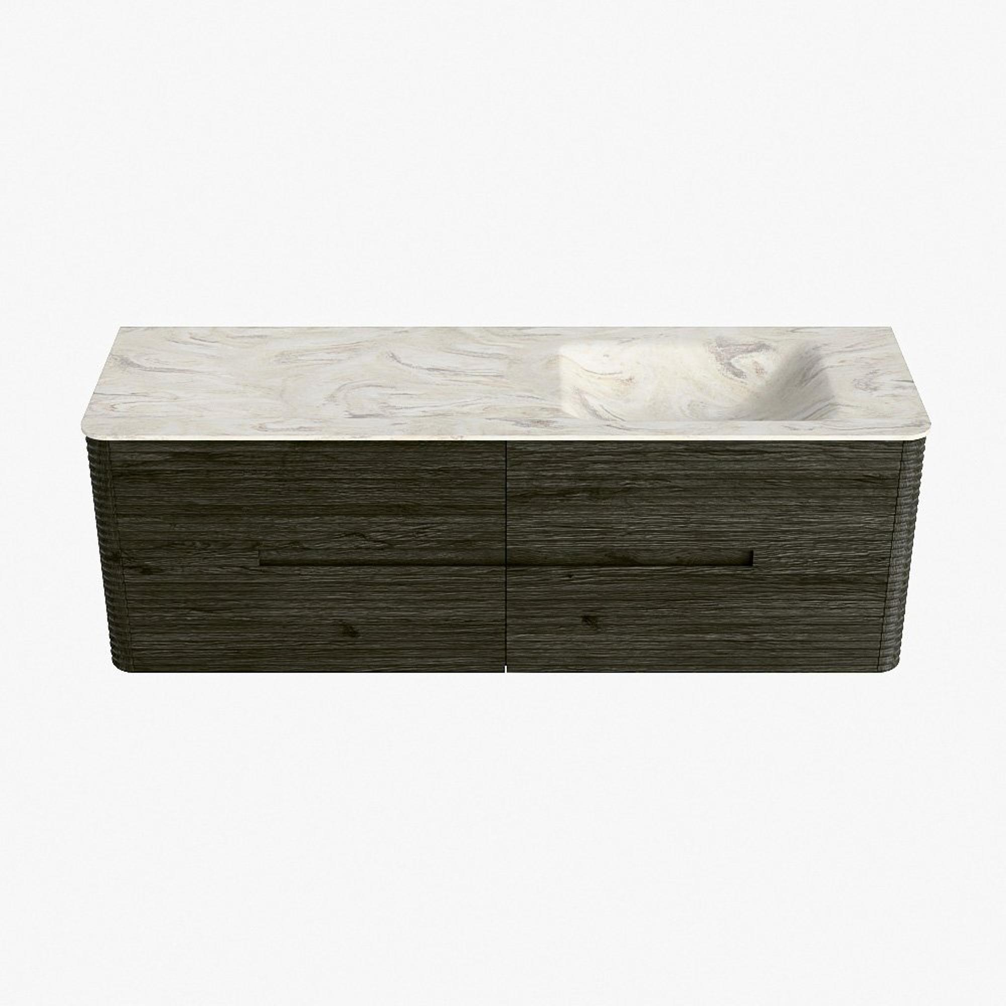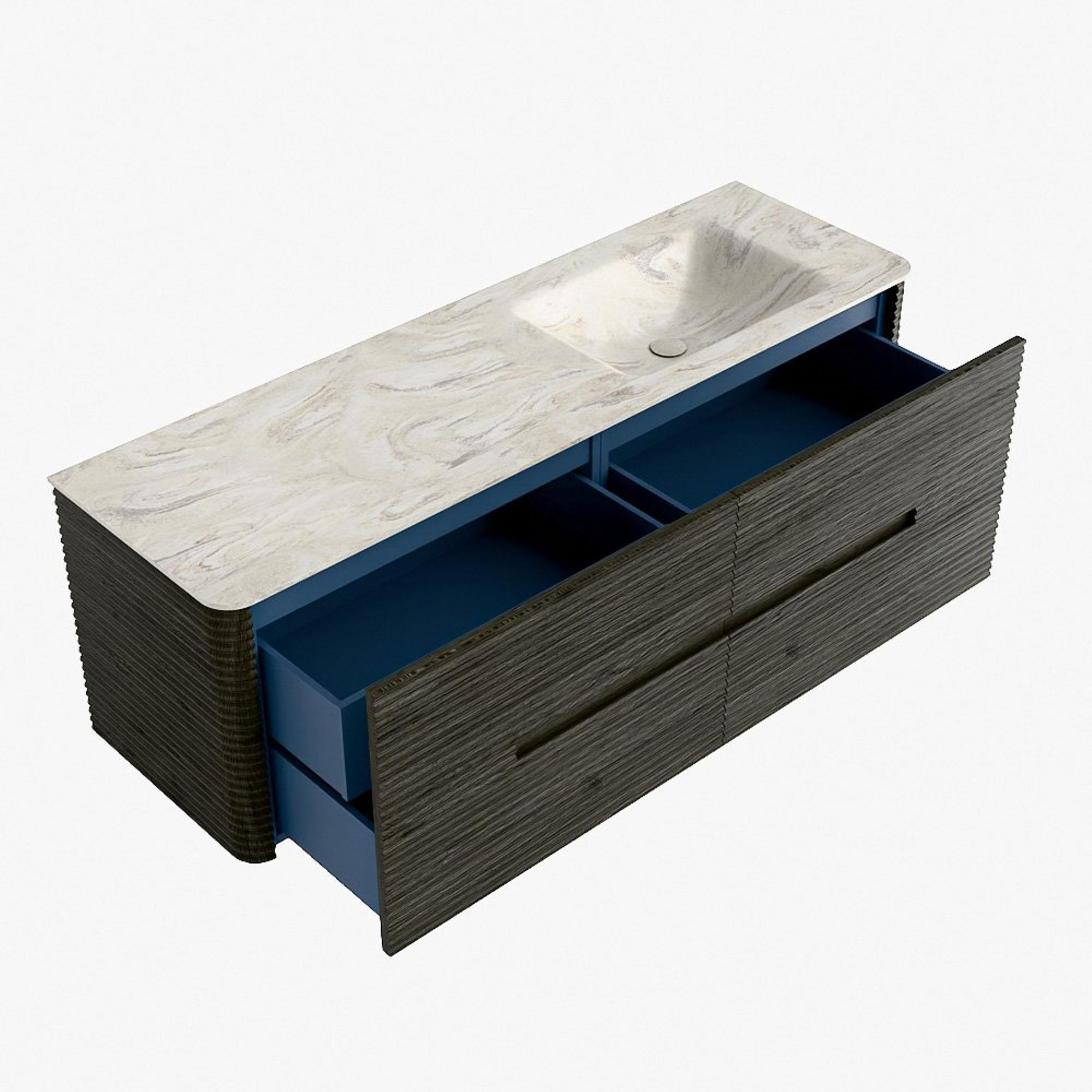 Mondiaz CIRO-DLUX Badkamermeubelset - 150x45x50cm - Solid surface wastafel Ostra - 1 wasbak Rechts - zonder kraangaten - 4 lades - Shadow