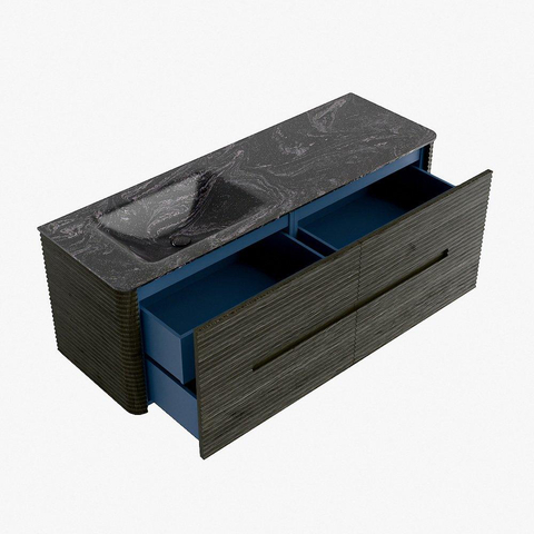 Mondiaz CIRO-DLUX Badkamermeubelset - 140x45x50cm - Solid surface wastafel Lava - 1 wasbak Links - zonder kraangaten - 4 lades - Shadow
